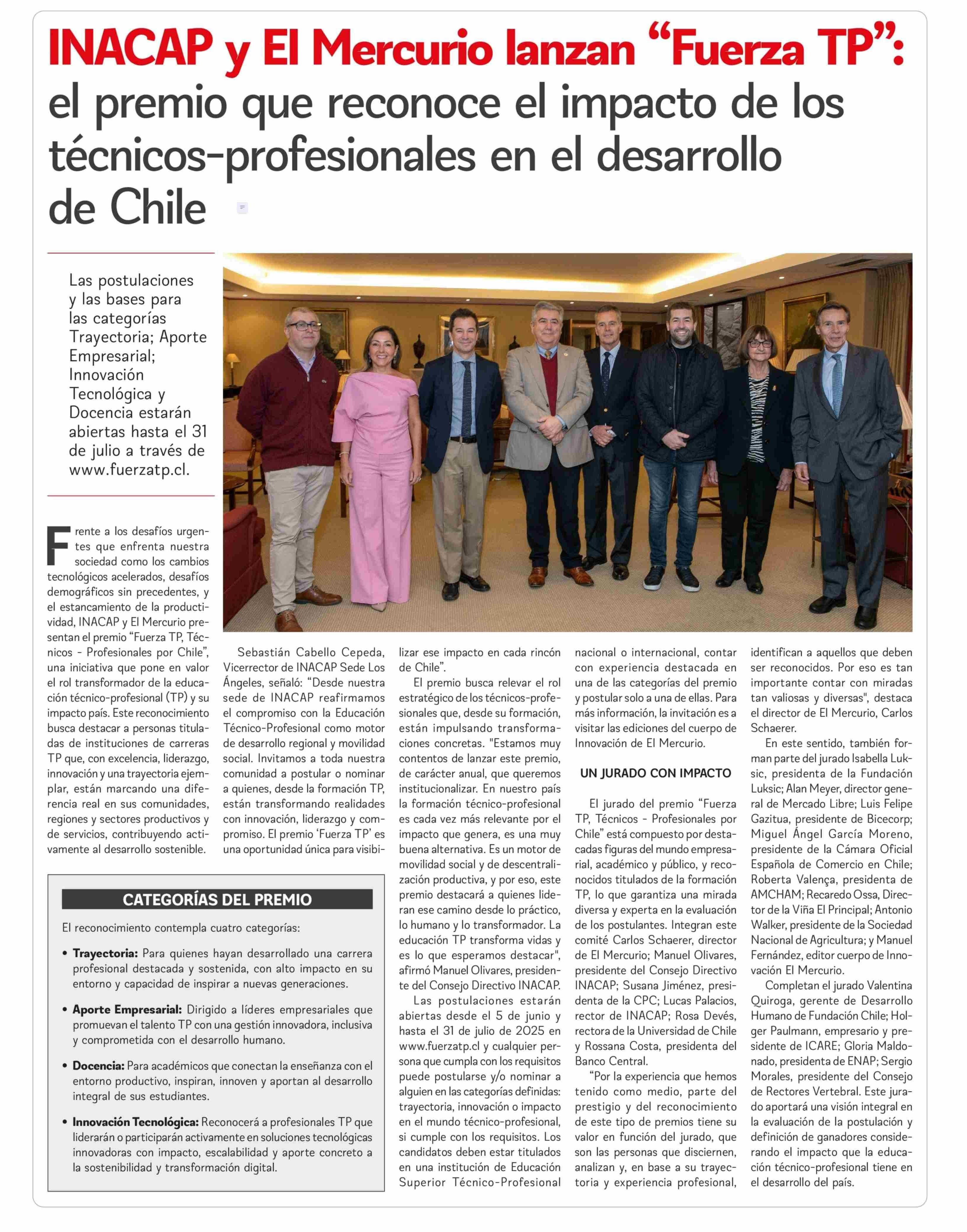 | Título: | INACAP y El Mercurio lanzan “Fuerza IP: el premio que reconoce el impacto de los técnicos-profesionales en el desarrollo de Chile |