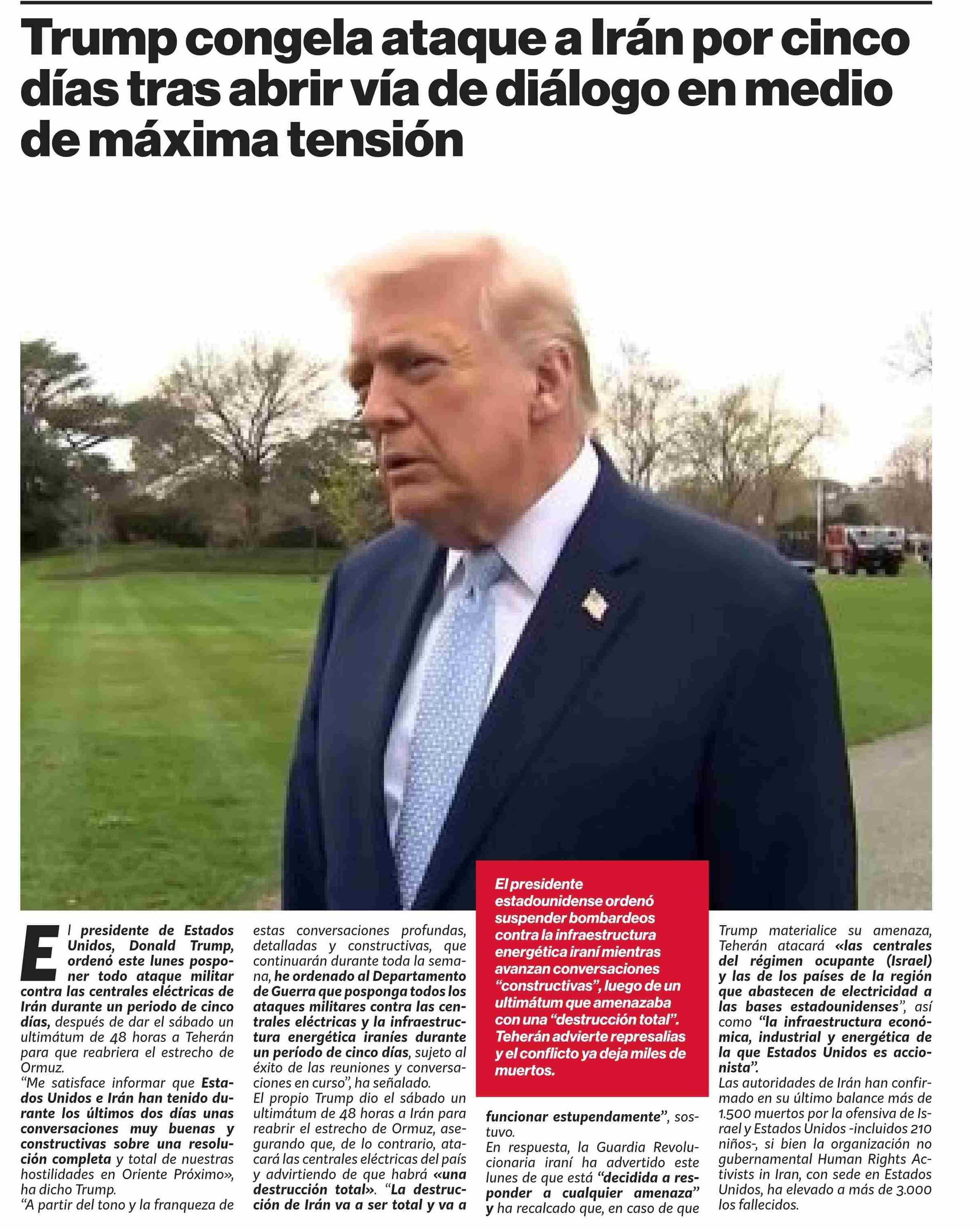 | Título: | Trump congela ataque a Irán por cinco días tras abrir vía de diálogo en medio de máxima tensión |