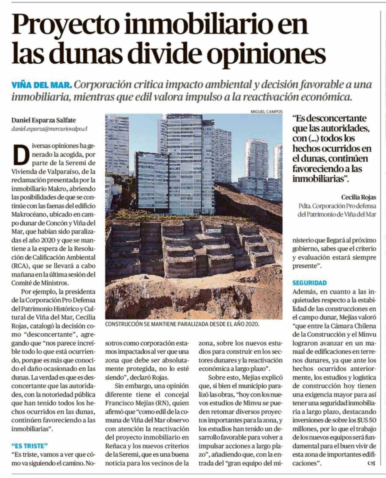 Proyecto inmobiliario en las dunas divide opiniones 08-03-2026 El Mercurio de Valparaíso |