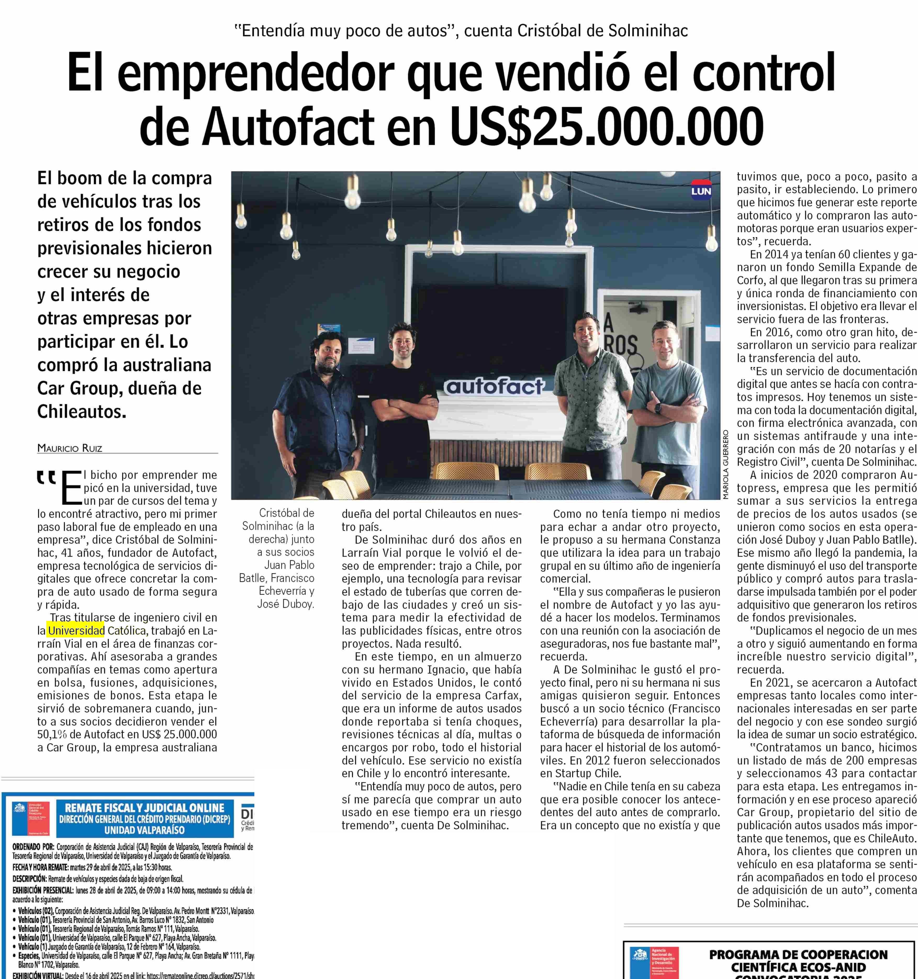 El emprendedor que vendió el control de Autofact en US$25,000.000 16-04-2025 Las Últimas Noticias |