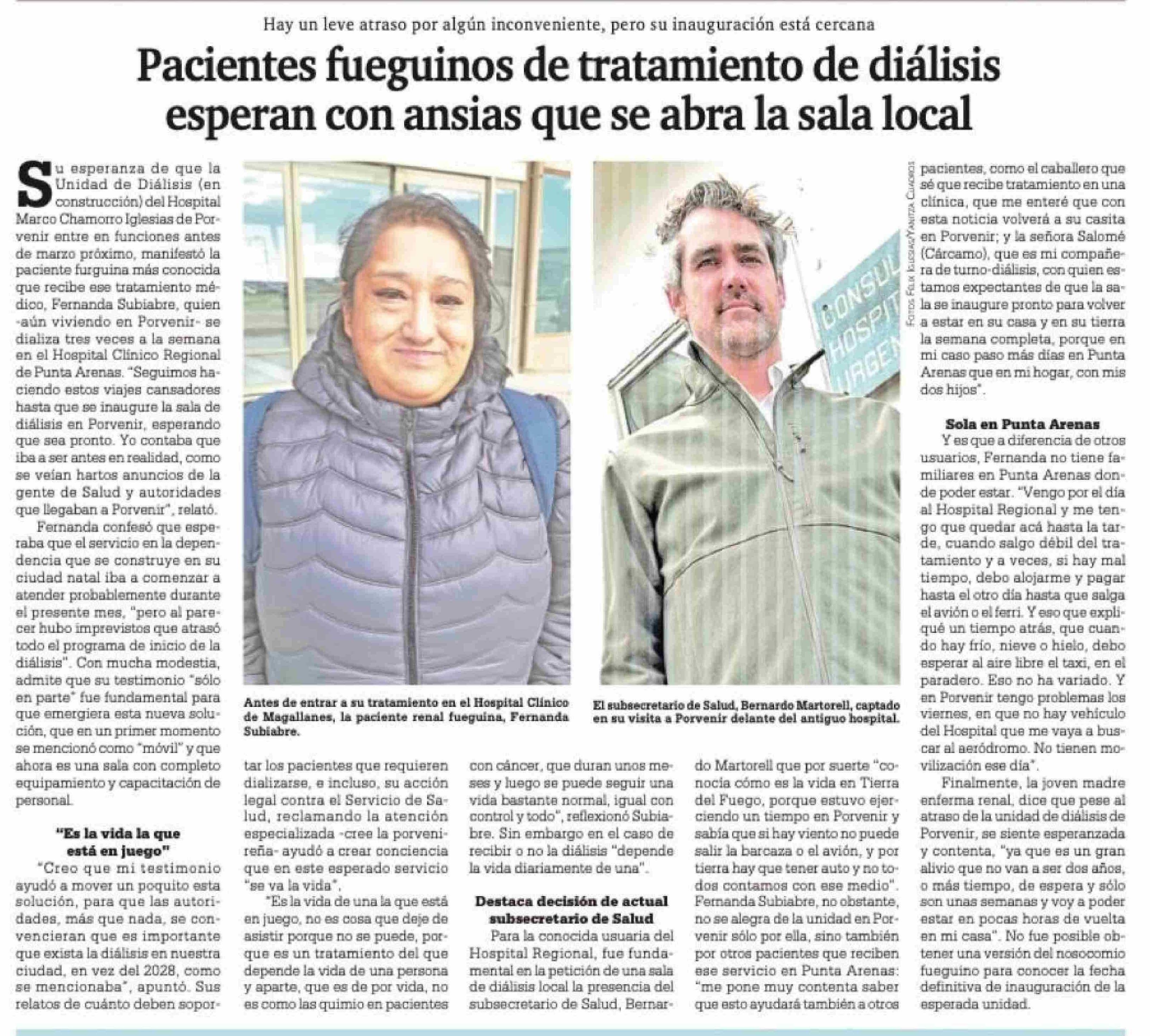 Pacientes fueguinos de tratamiento de diálisis esperan con ansias que se abra la sala local 27-01-2026 La Prensa Austral |