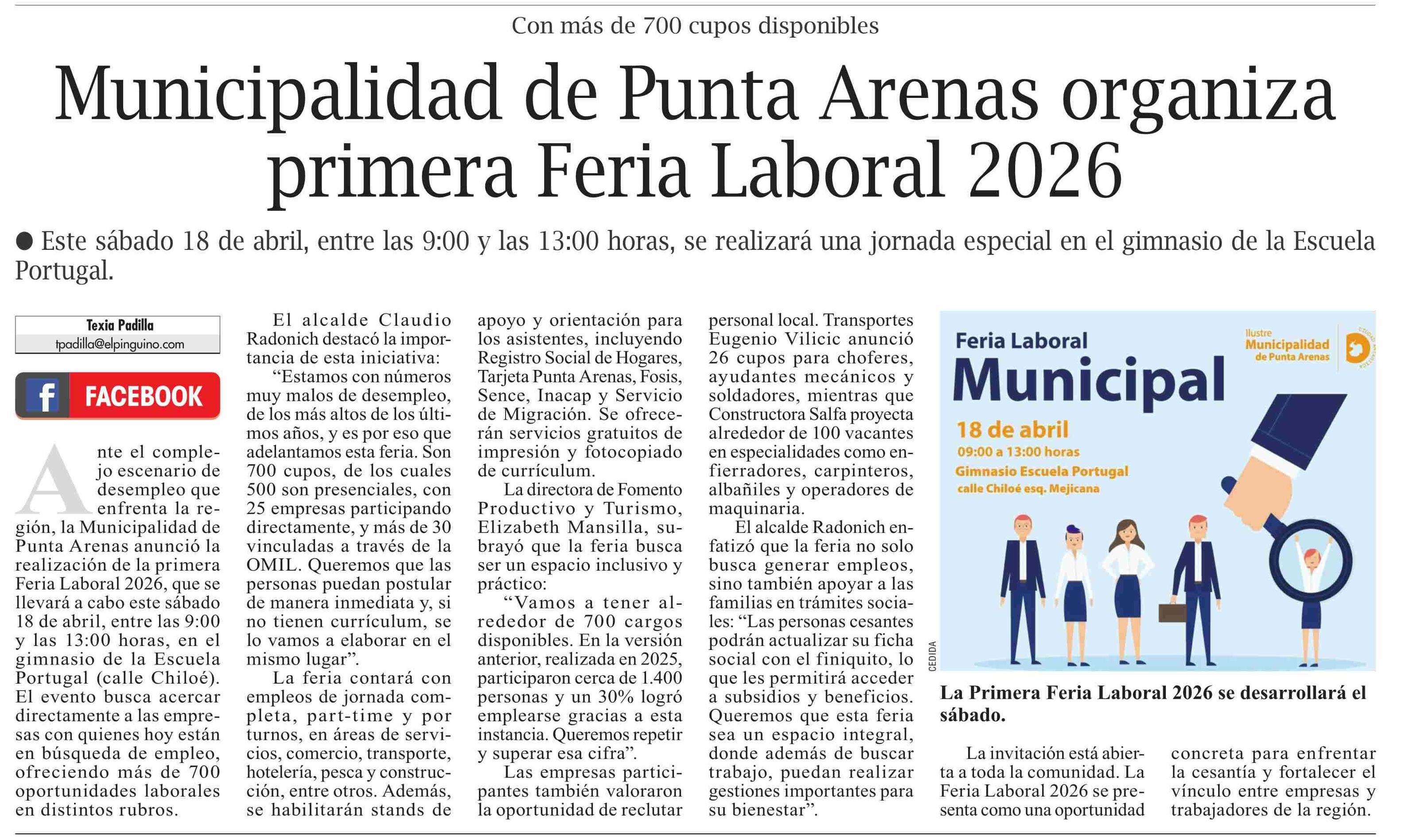 Título: Municipalidad de Punta Arenas organiza primera Feria Laboral 2026