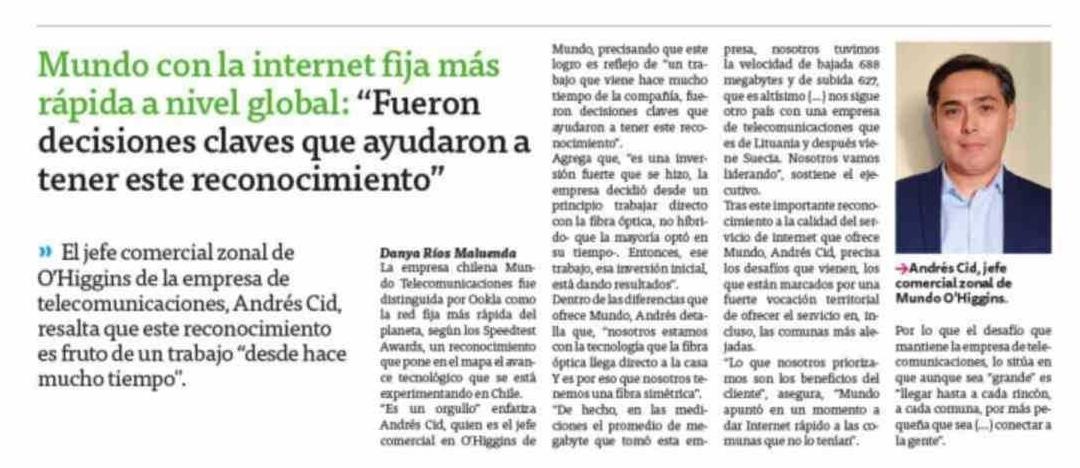 | Título: | Mundo con la internet fija más rápida a nivel global: "Fueron decisiones claves que ayudaron a tener este reconocimiento" |