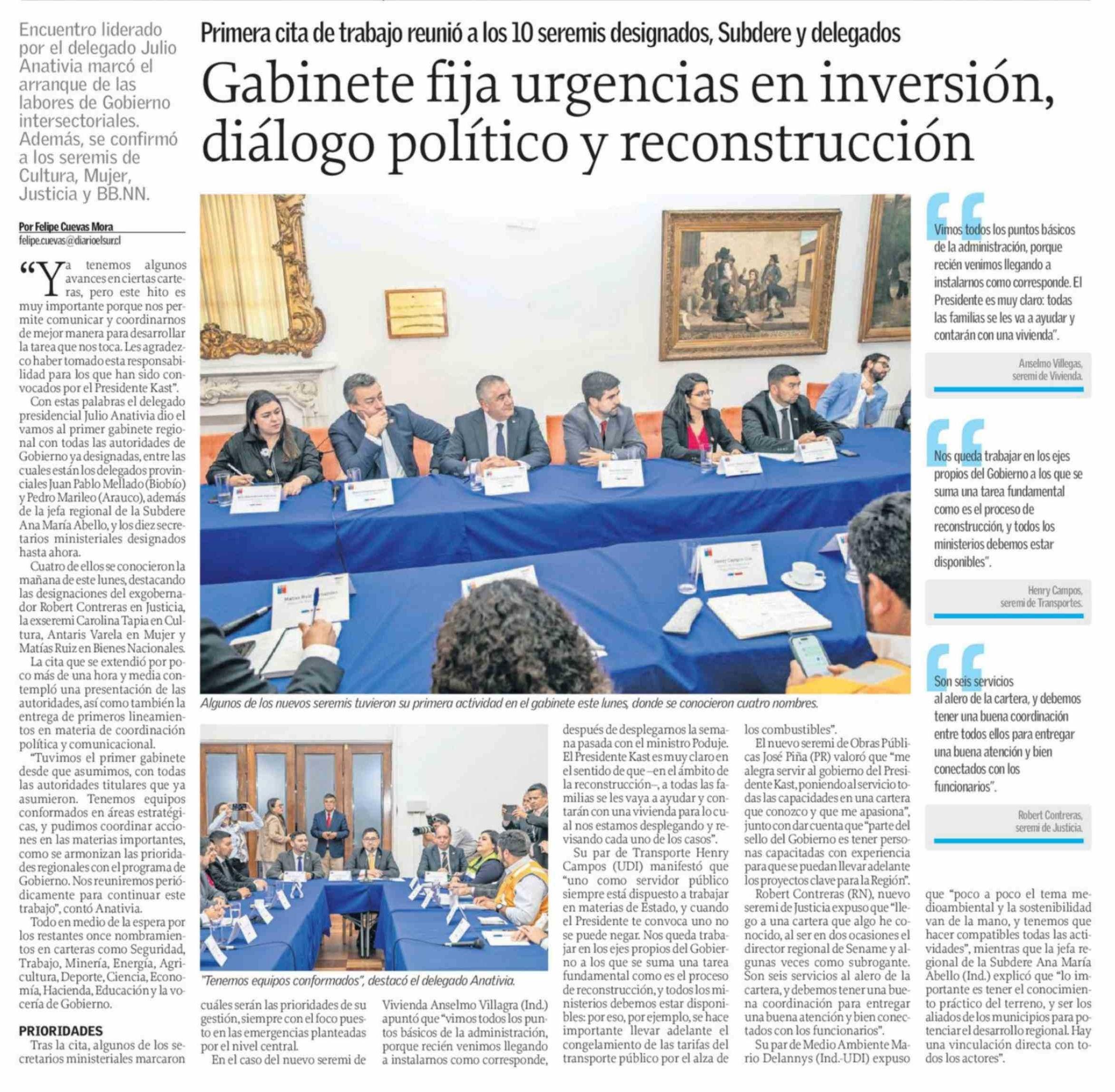 Gabinete fija urgencias en inversión, diálogo político y reconstrucción 31-03-2026 El Sur |