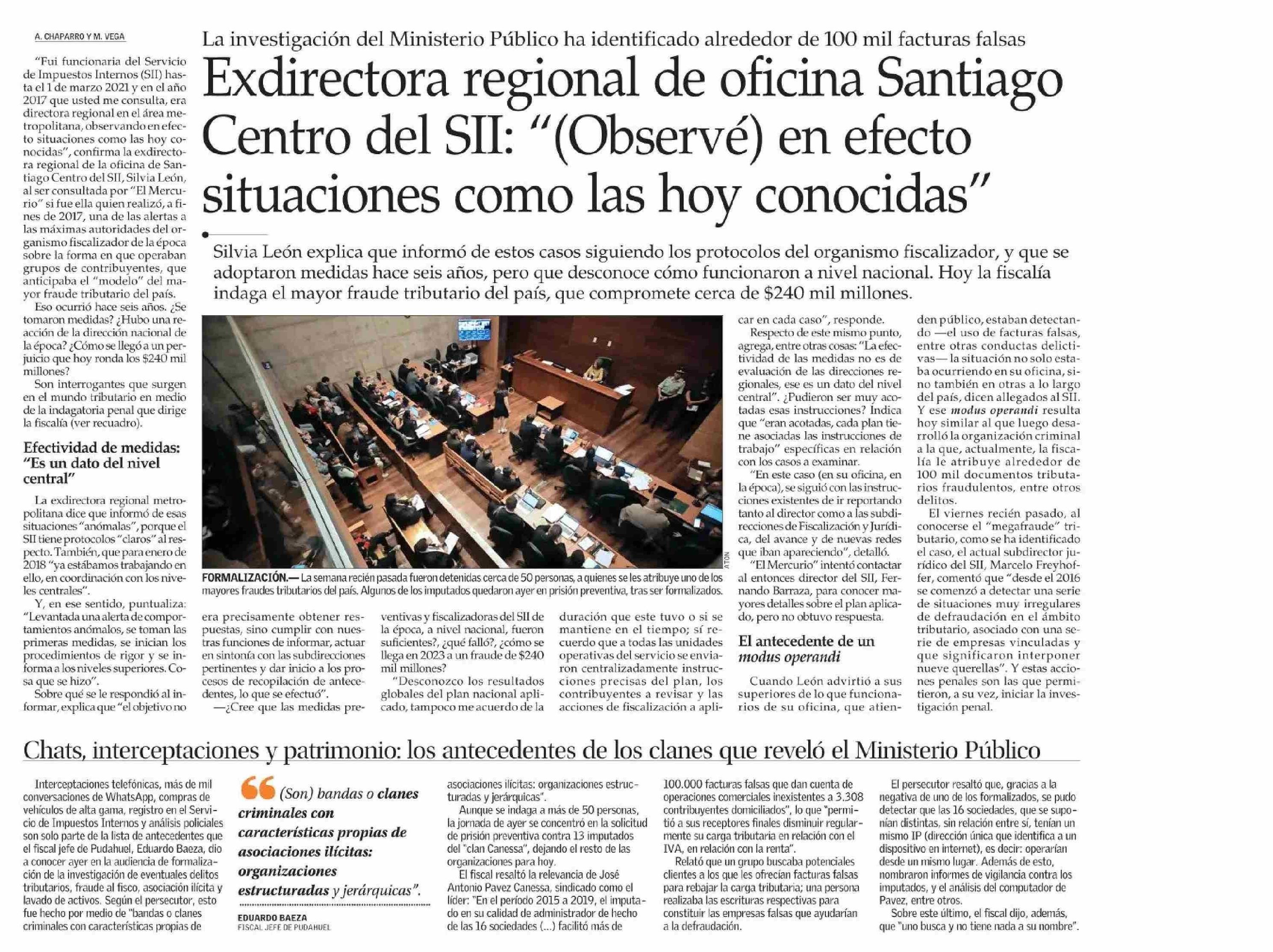 Exdirectora regional de oficina Santiago Centro del SII: “(Observé) en efecto situaciones como las hoy conocidas” 19-12-2023 El Mercurio Segunda Edición (C) - Chile |