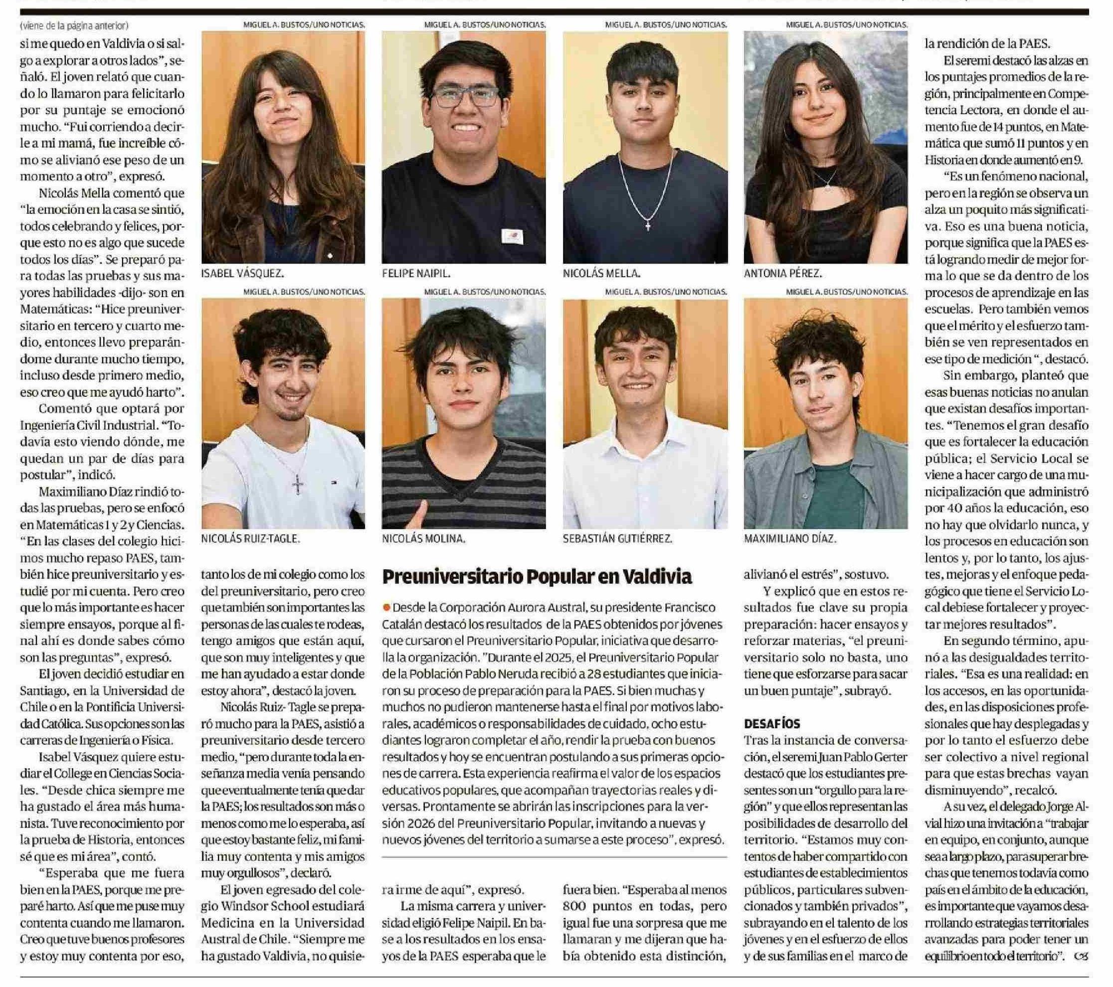 Reconocen el talento y esfuerzo de estudiantes que rindieron la PAES 08-01-2026 Diario Austral Región de Los Ríos |
