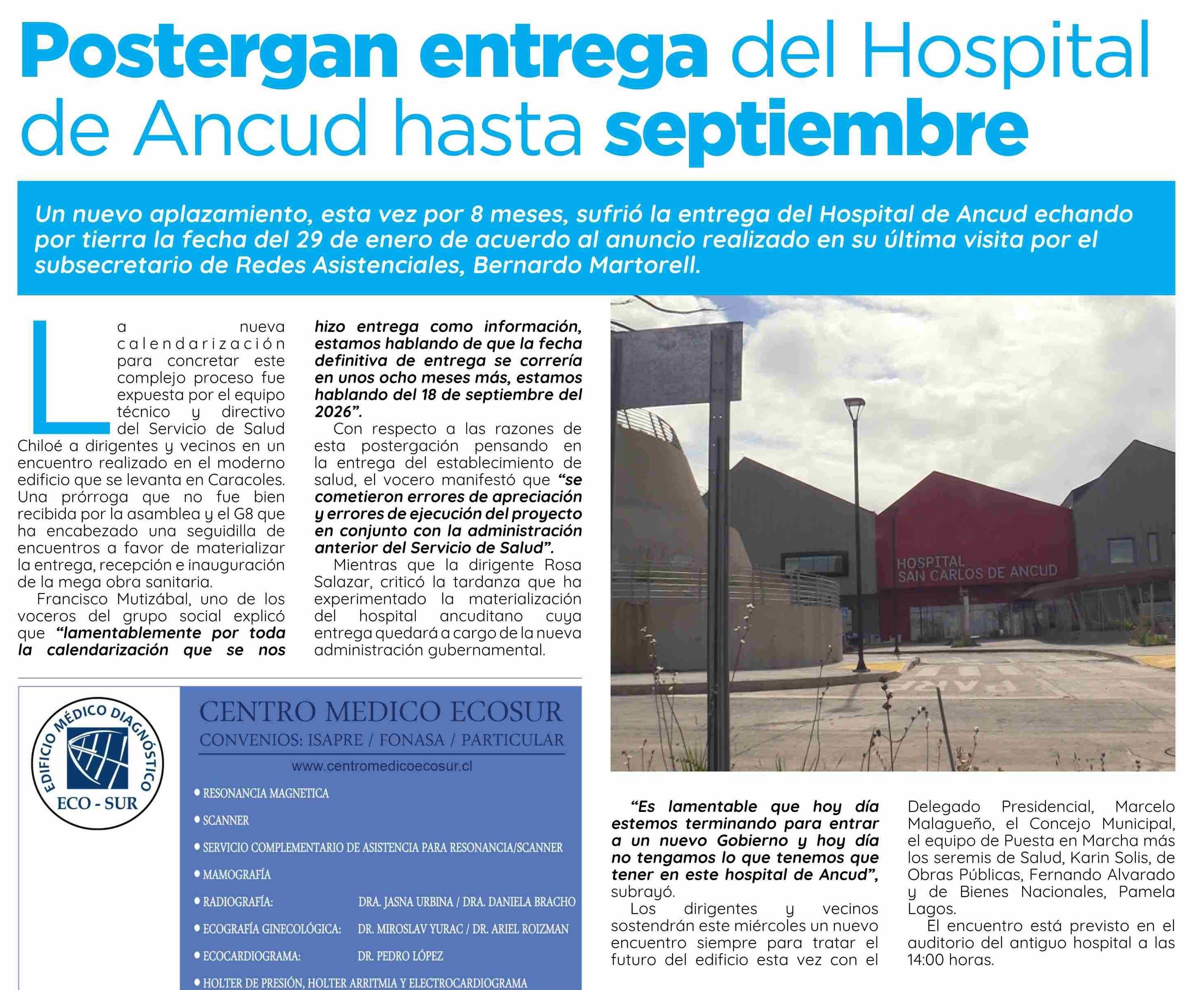 Título: Postergan entrega del Hospital de Ancud hasta septiembre