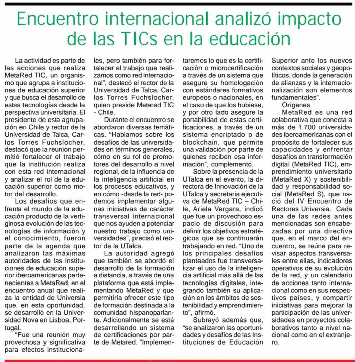 Encuentro internacional analizó impacto de las TICs en la educación 11-07-2025 Maule Hoy |