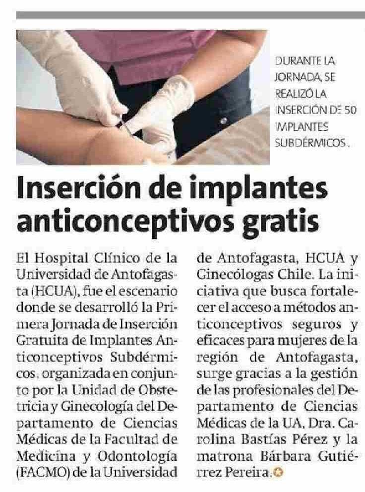 Inserción de implantes anticonceptivos gratis 28-05-2025 La Estrella de Antofagasta |
