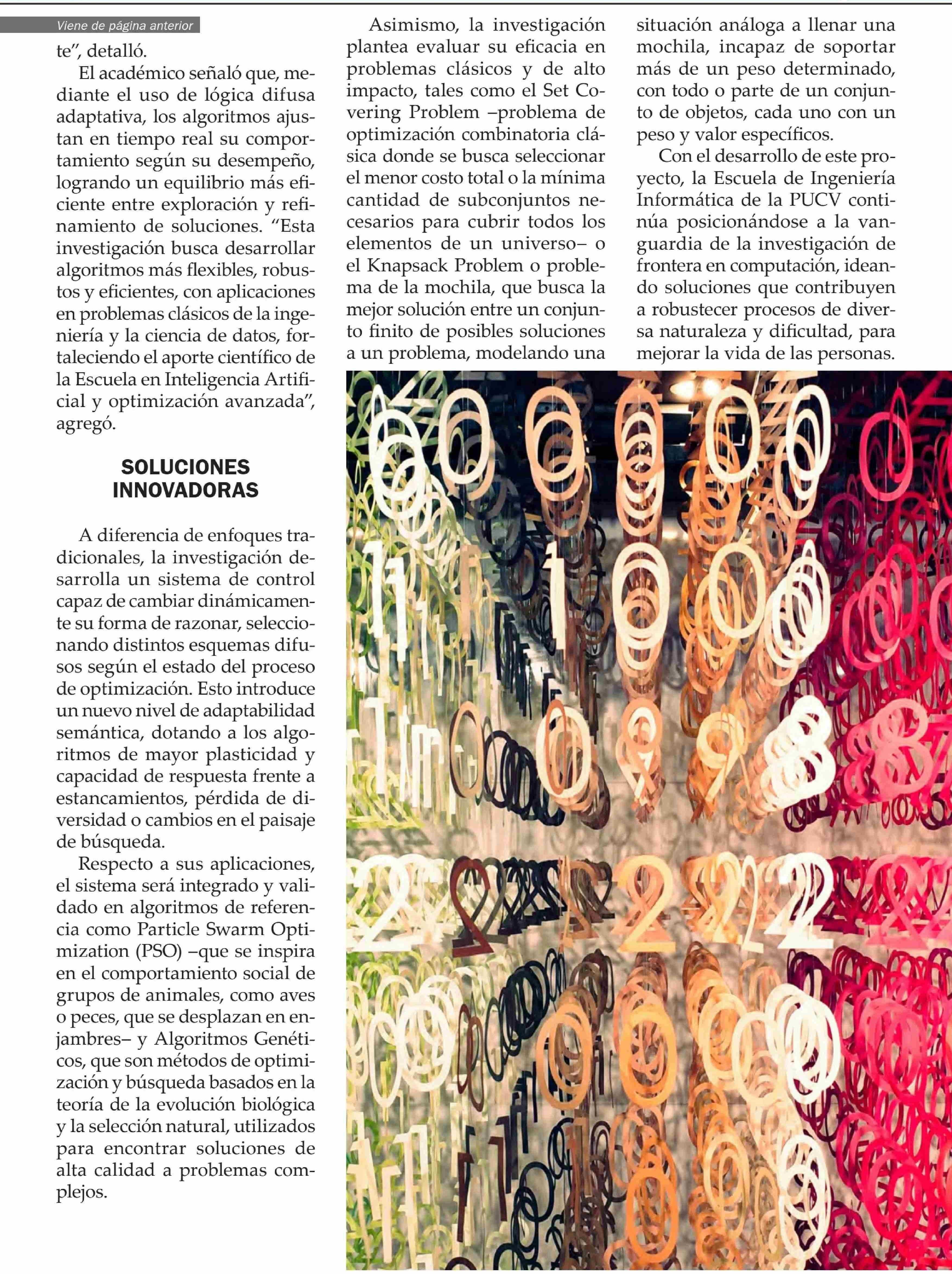 PUCV avanza en Inteligencia Artificial con algoritmos capaces de “aprender” de su ' propio desempeño 18-03-2026 El Observador Vespertino |