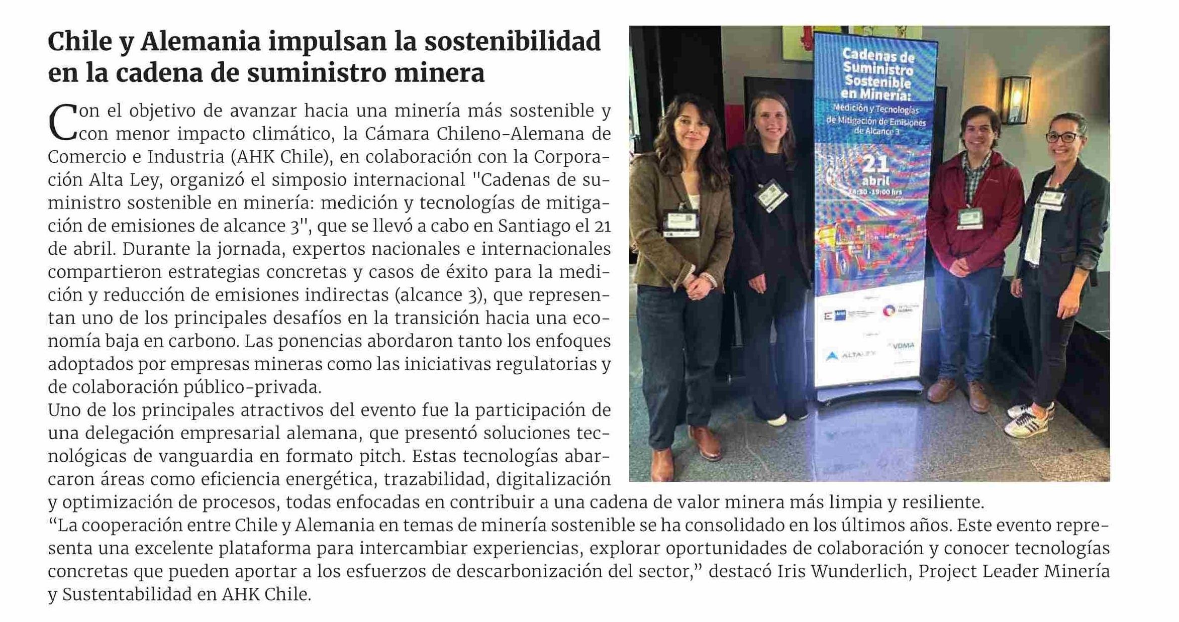 Chile y Alemania impulsan la sostenibilidad en la cadena de suministro minera 23-05-2025 Revista NG |
