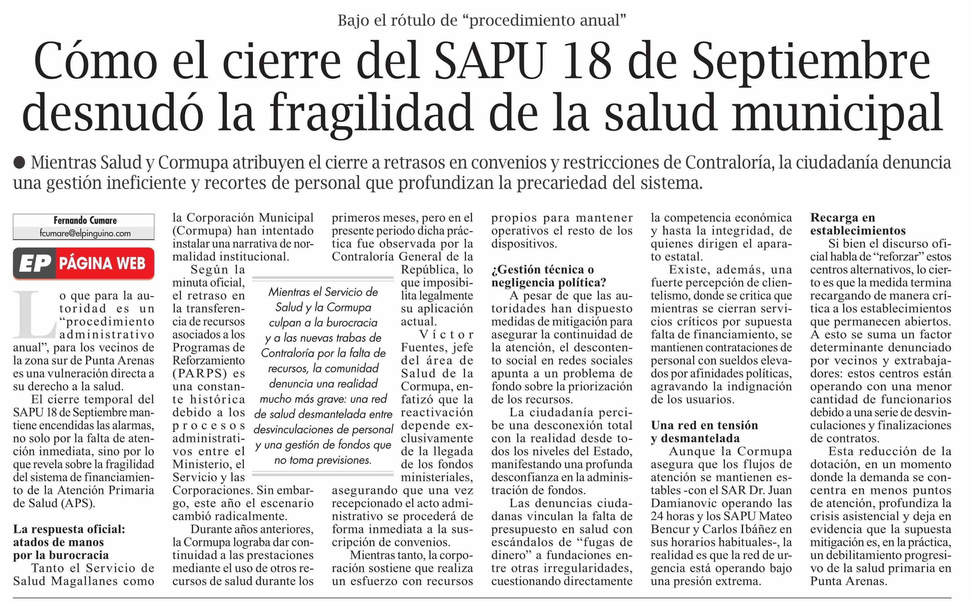 Título: Cómo el cierre del SAPU 18 de Septiembre desnudo la fragilidad de la salud municipal
