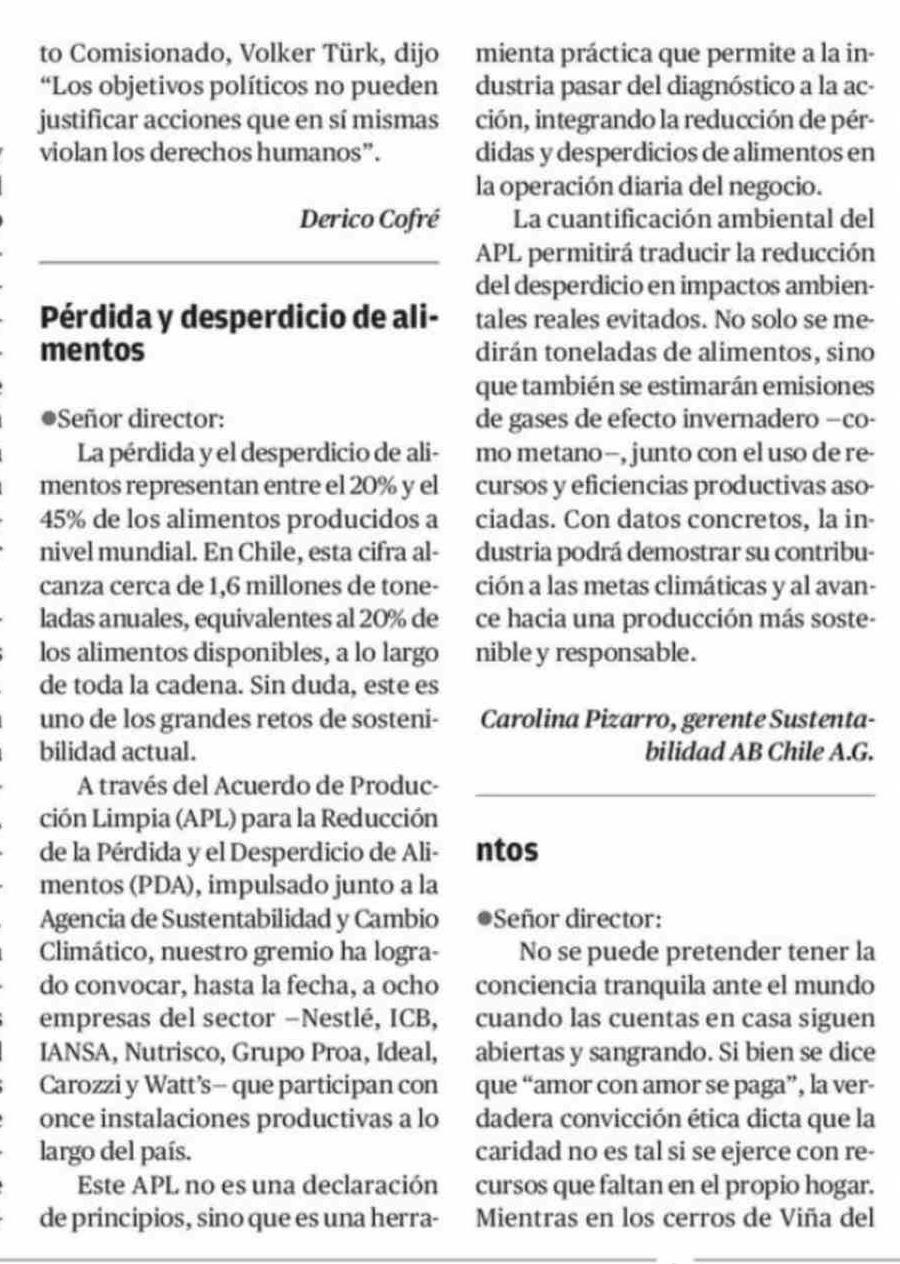 Cartas: Pérdida y desperdicio de alimentos
