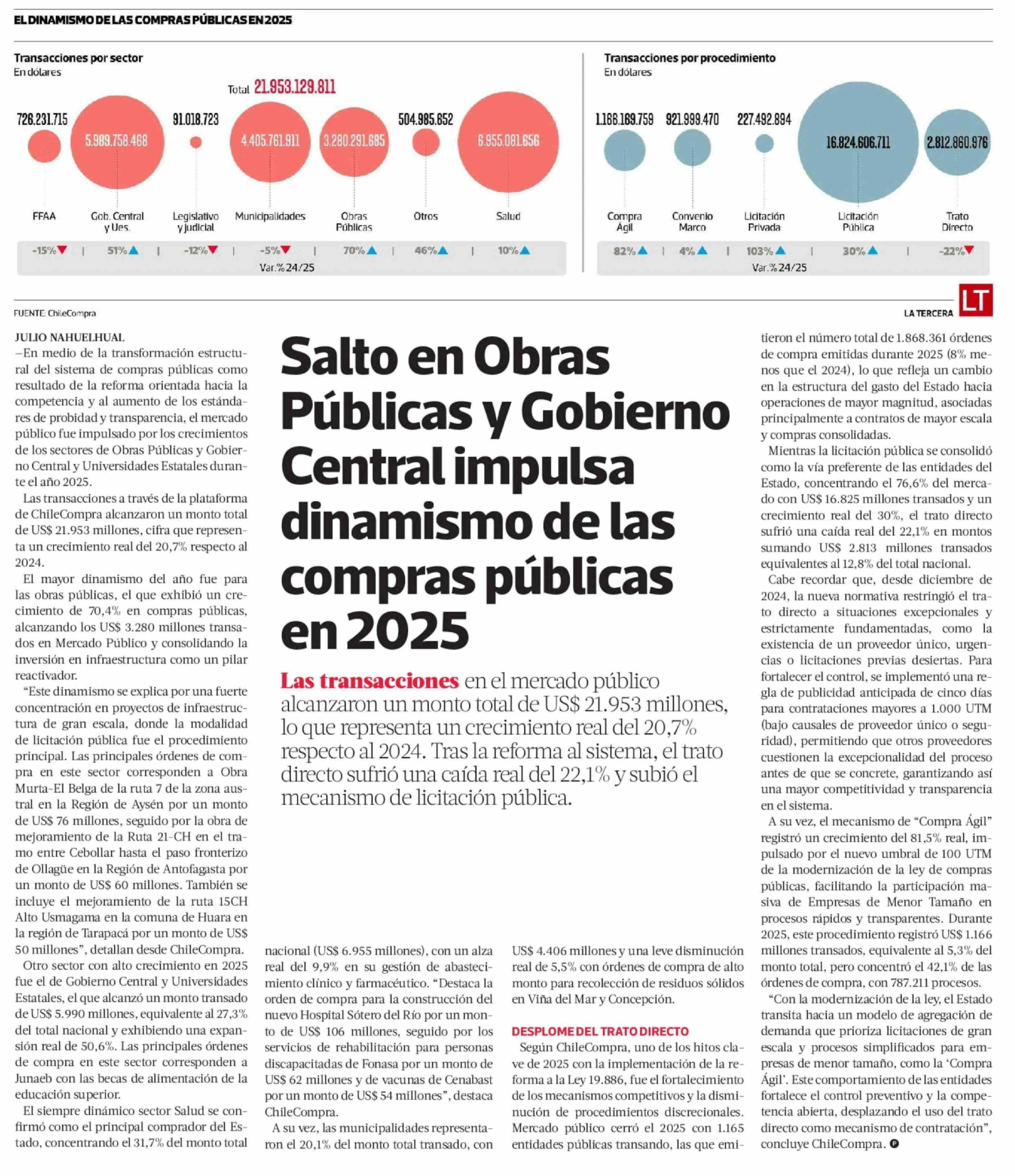 Título: Salto en Obras Públicas y Gobierno Central impulsa dinamismo de las compras públicas en 2025