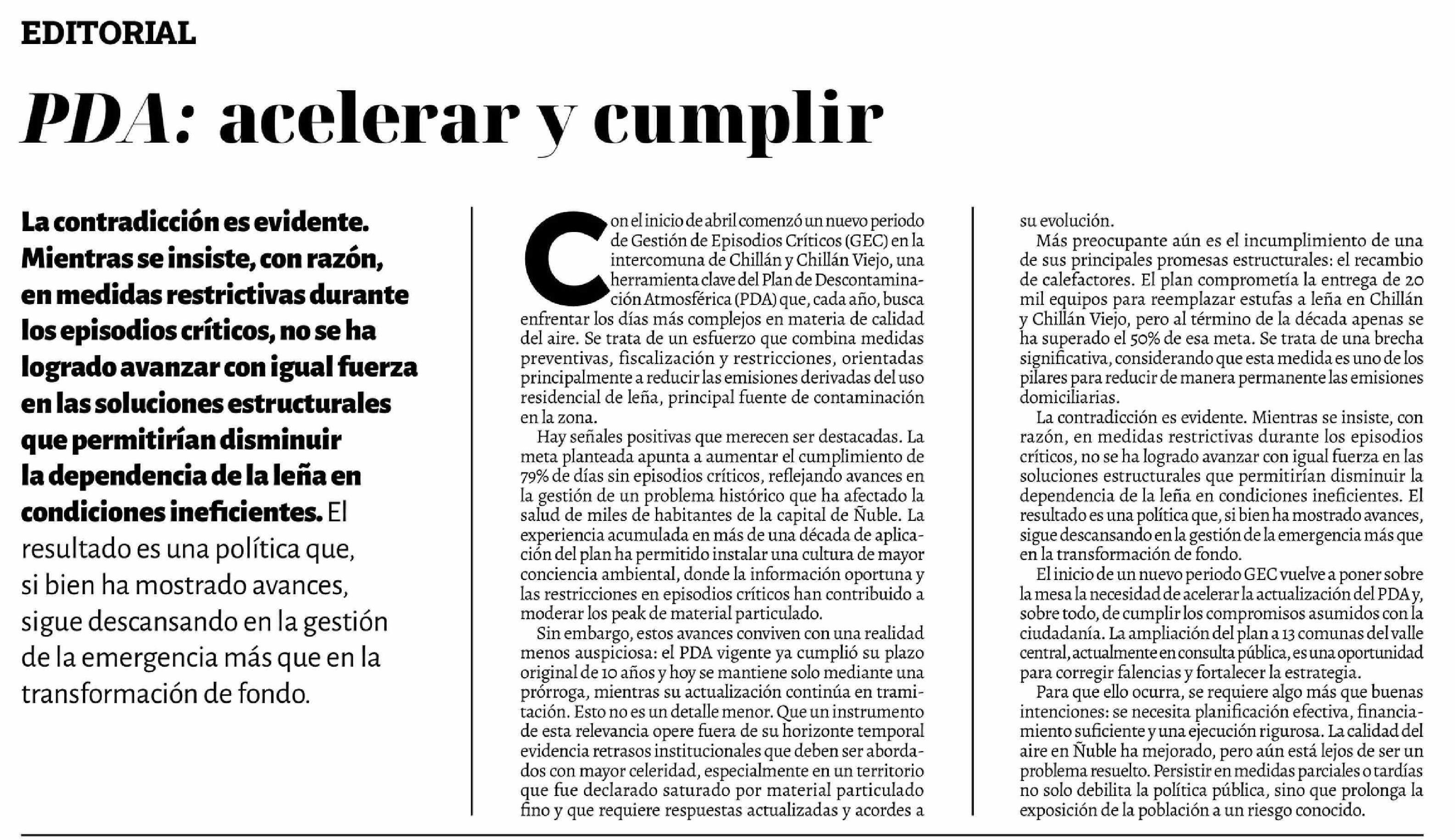 Editorial: PDA: acelerar y cumplir 04-04-2026 La Discusión |
