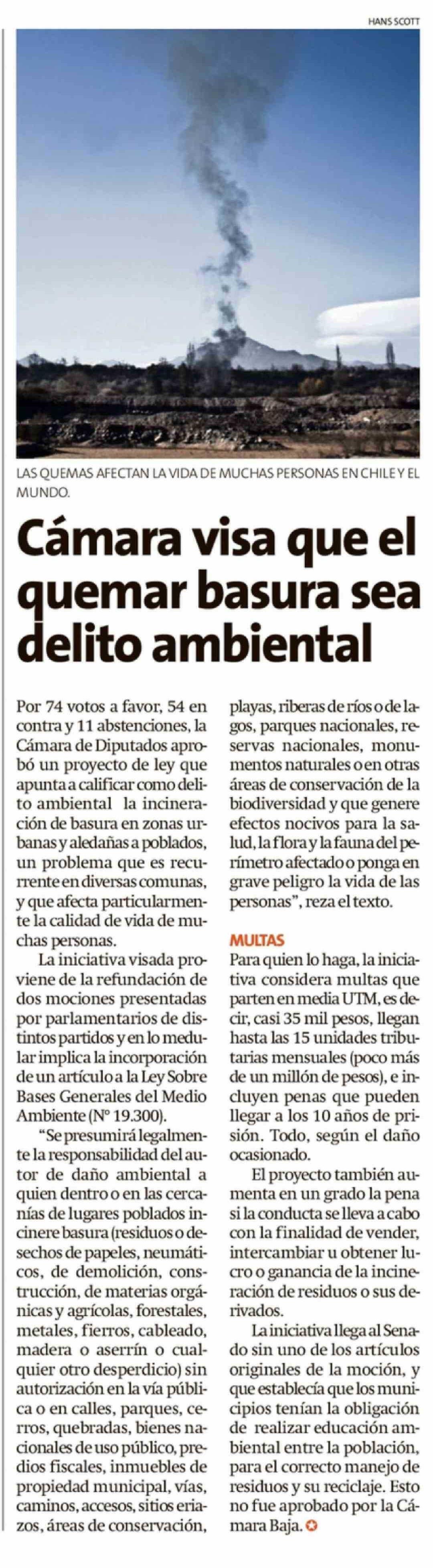 Cámara visa que el quemar basura sea delito ambiental 20-04-2026 La Estrella de Chiloé |