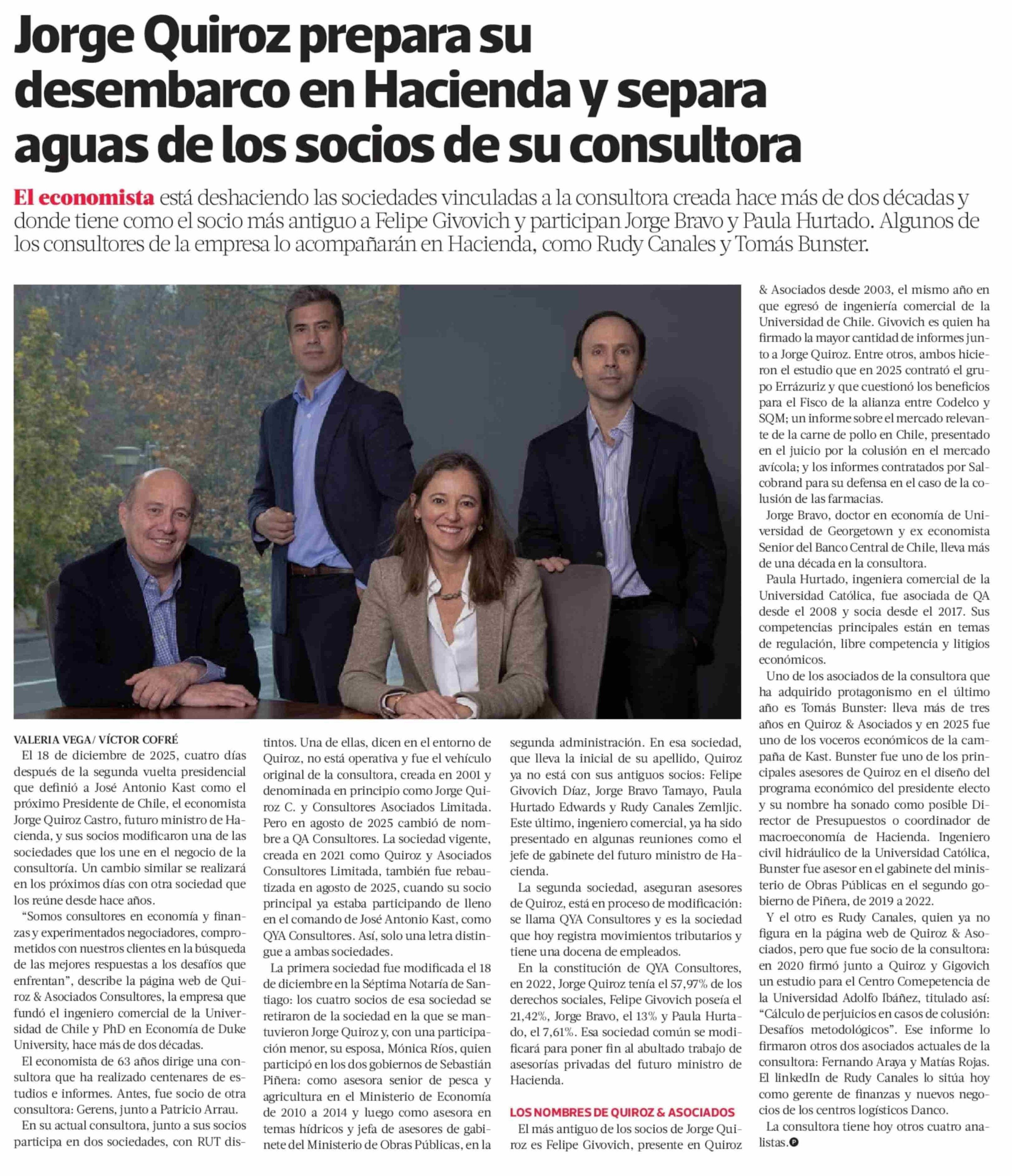 Título: Jorge Quiroz prepara su desembarco en Hacienda y separa aguas de los socios de su consultora