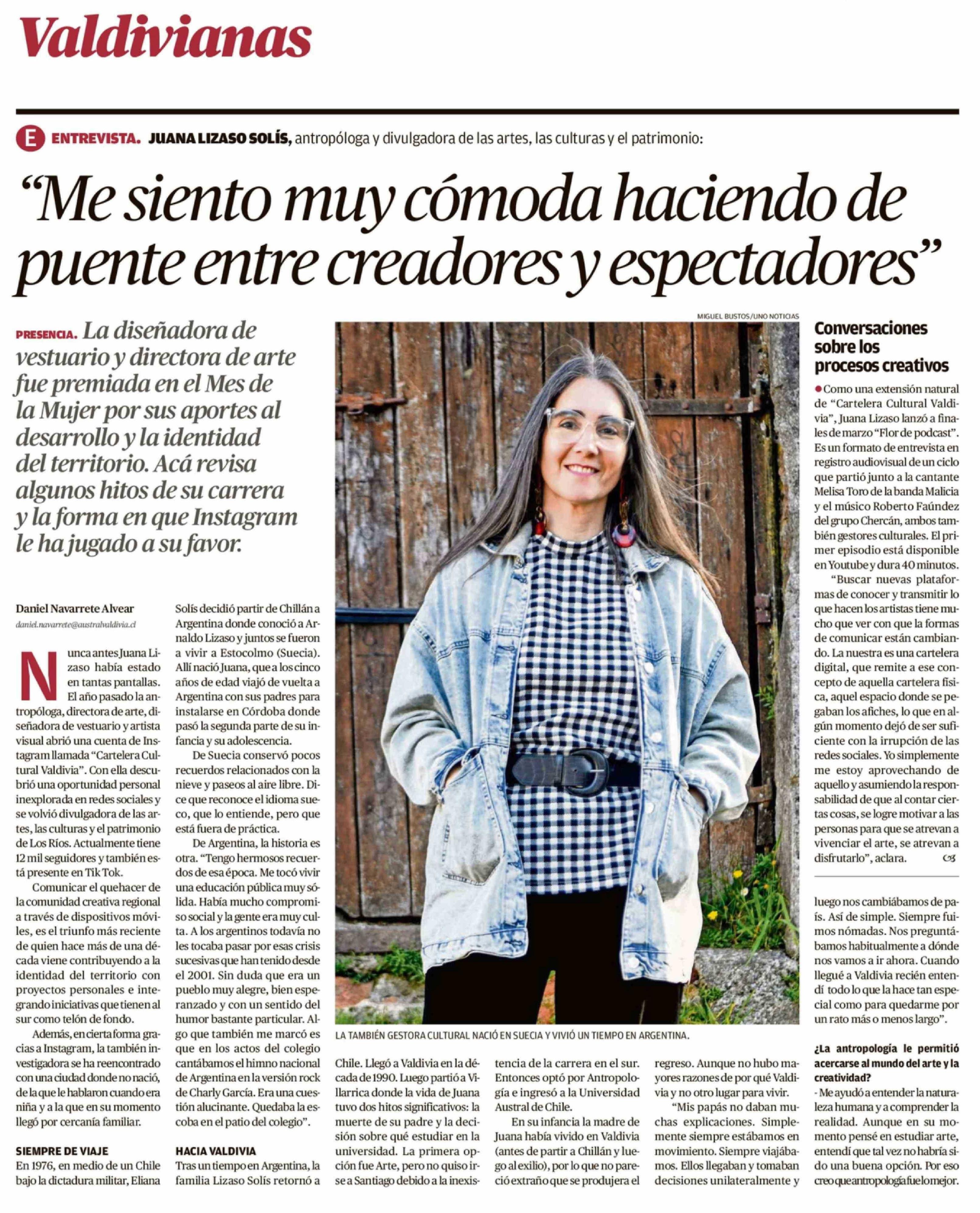 "Me siento muy cómoda haciendo de puente entre creadores y espectadores" 04-04-2026 Diario Austral Región de Los Ríos |