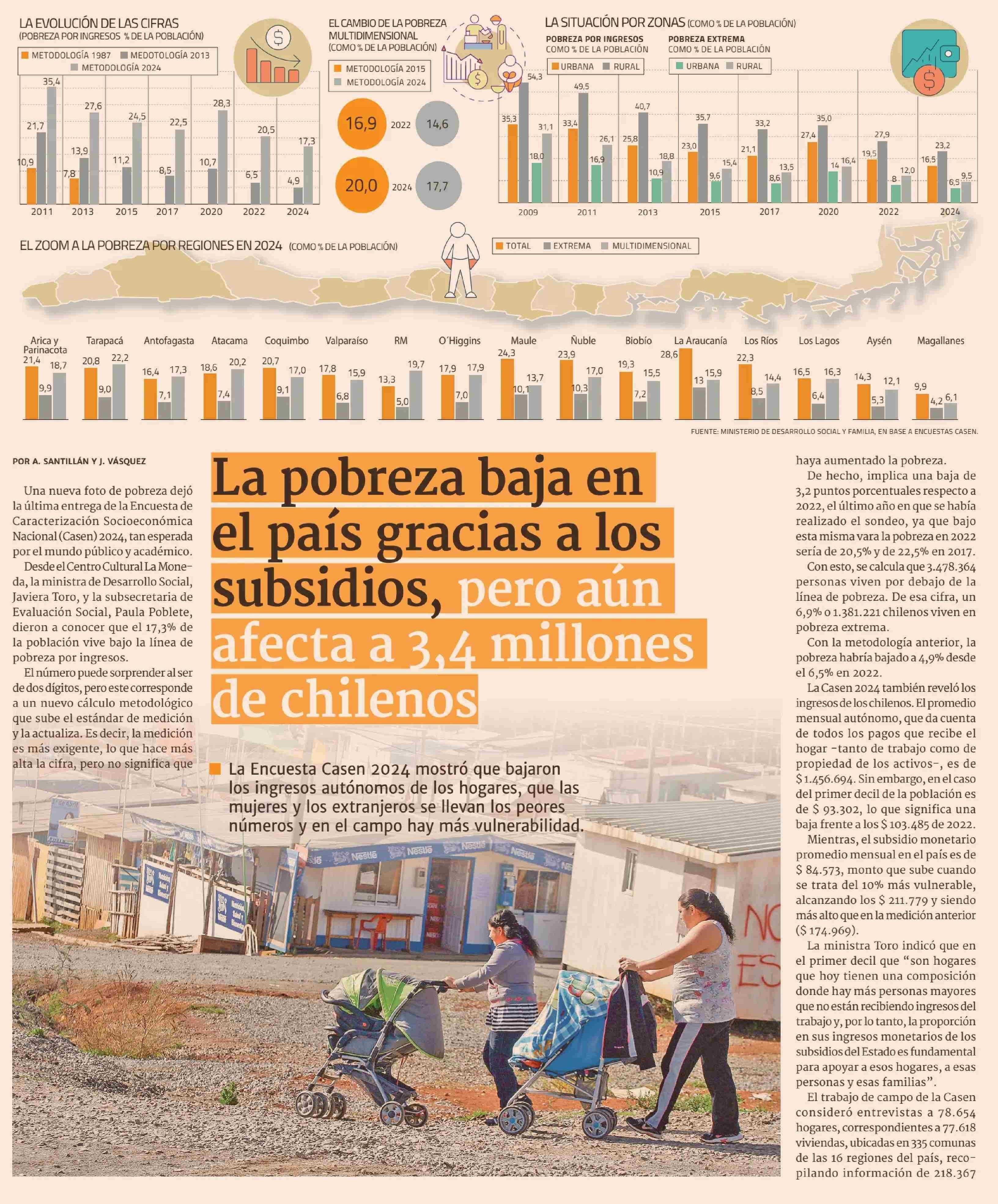 Título: La pobreza baja en el país gracias a los subsidios, pero aún afecta a 3,4 millones de chilenos