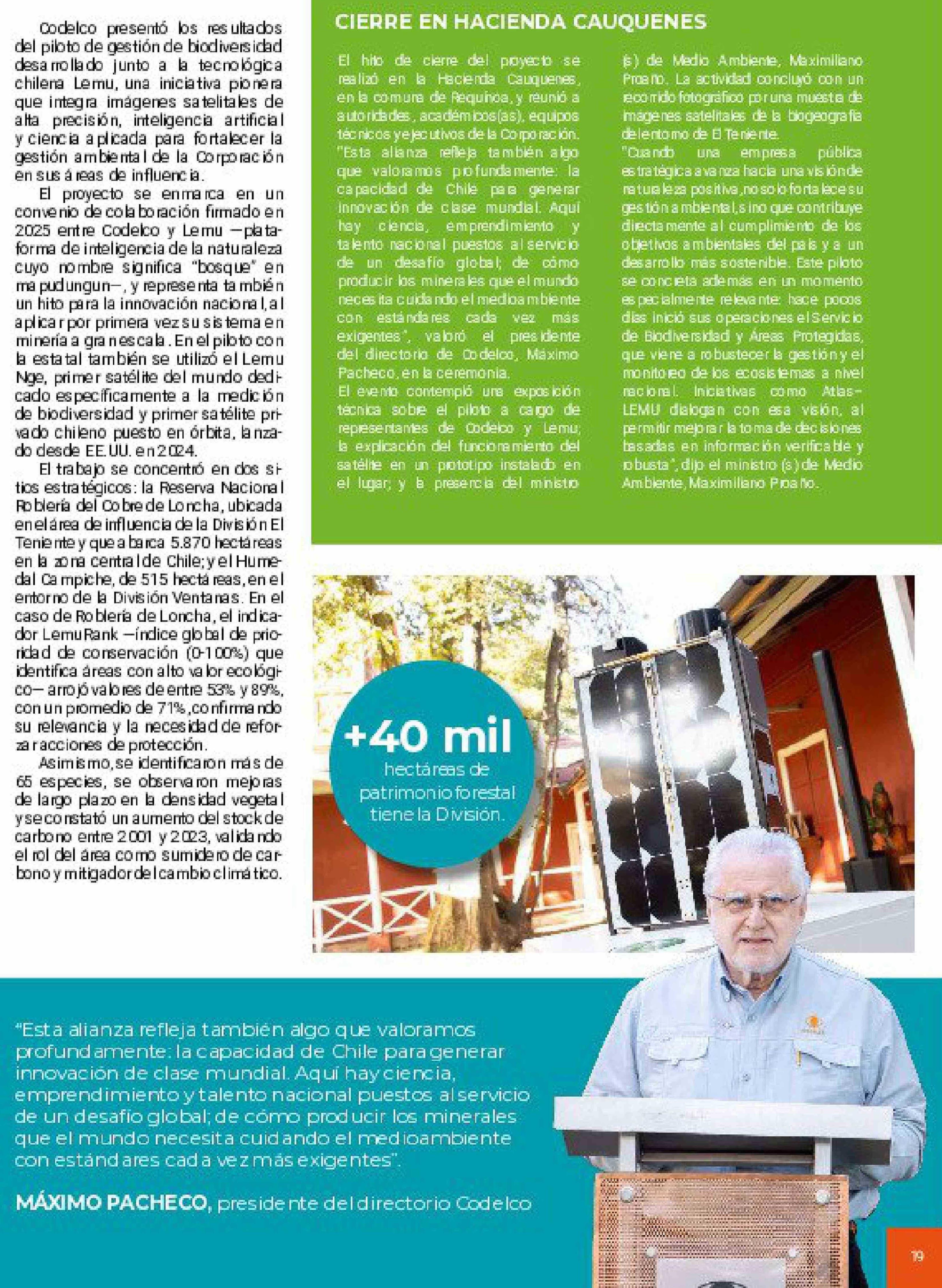 Codelco presenta proyecto pionero que incorpora tecnología satelital para proteger la biodiversidad 22-02-2026 El Rancagüino |