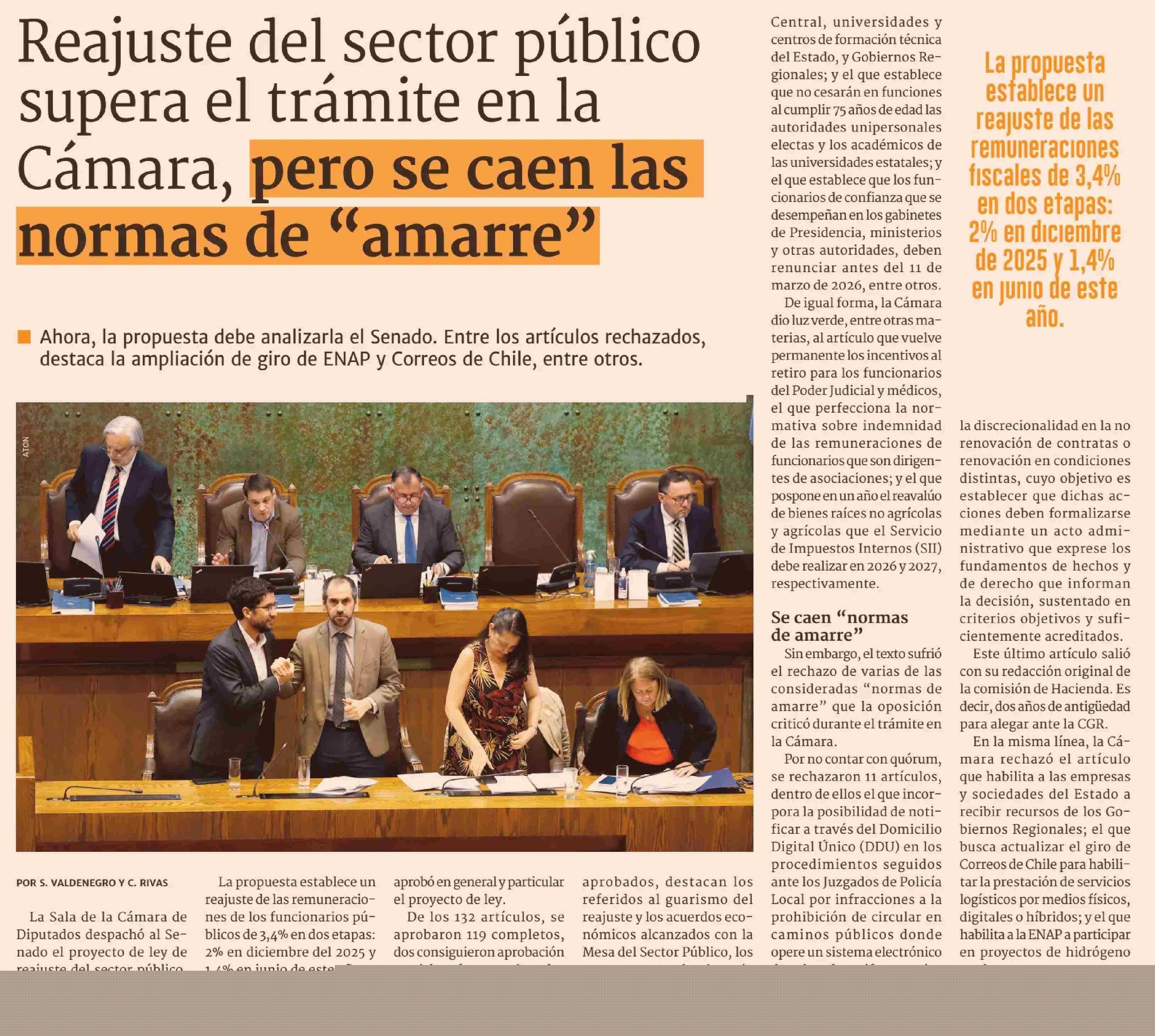Título: Reajuste del sector público supera el trámite en la Cámara, pero se caen las normas de "amarre