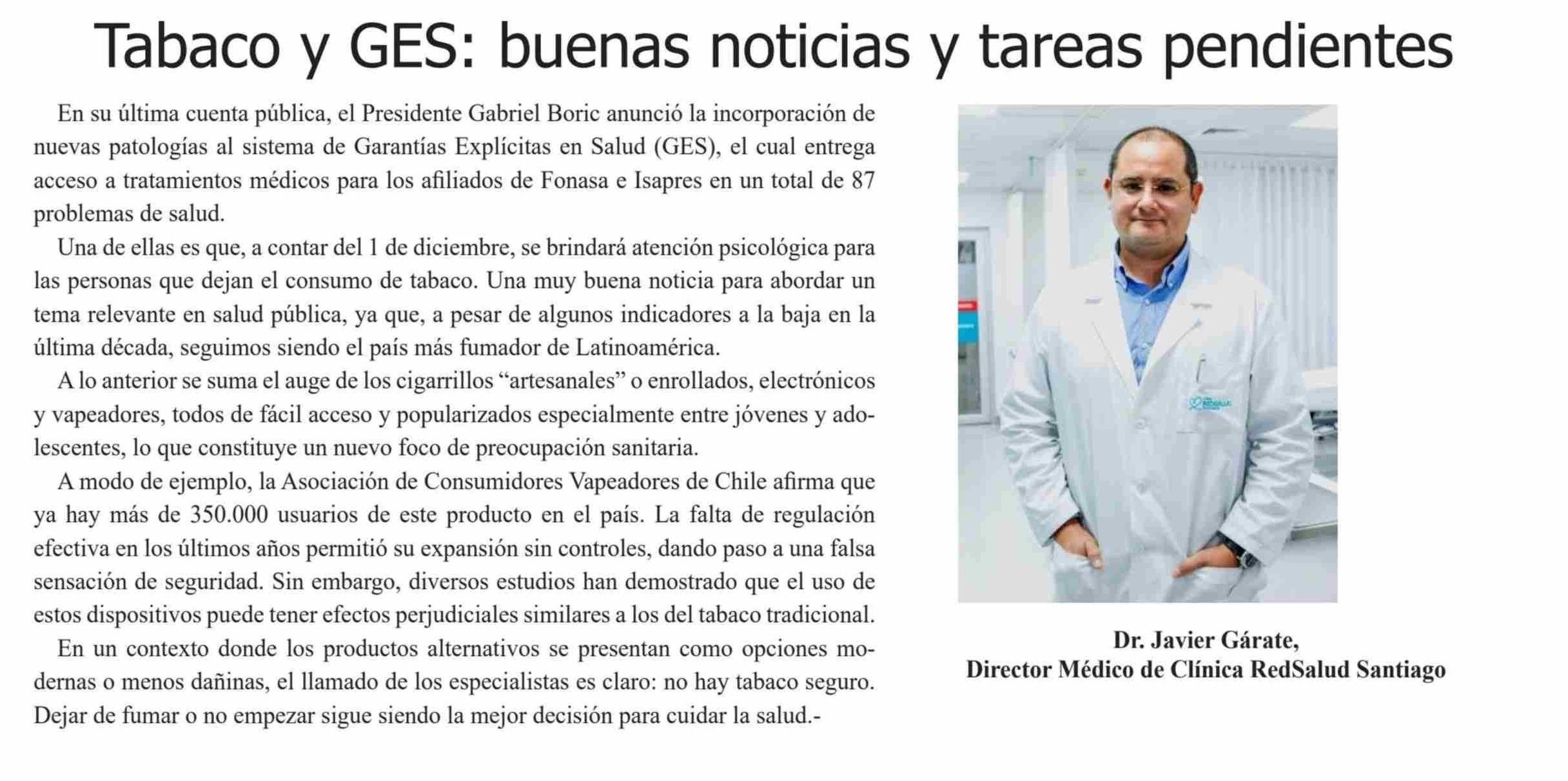 | Título: | COLUMNAS DE OPINIÓN: Tabaco y GES: buenas noticias y tareas pendientes |