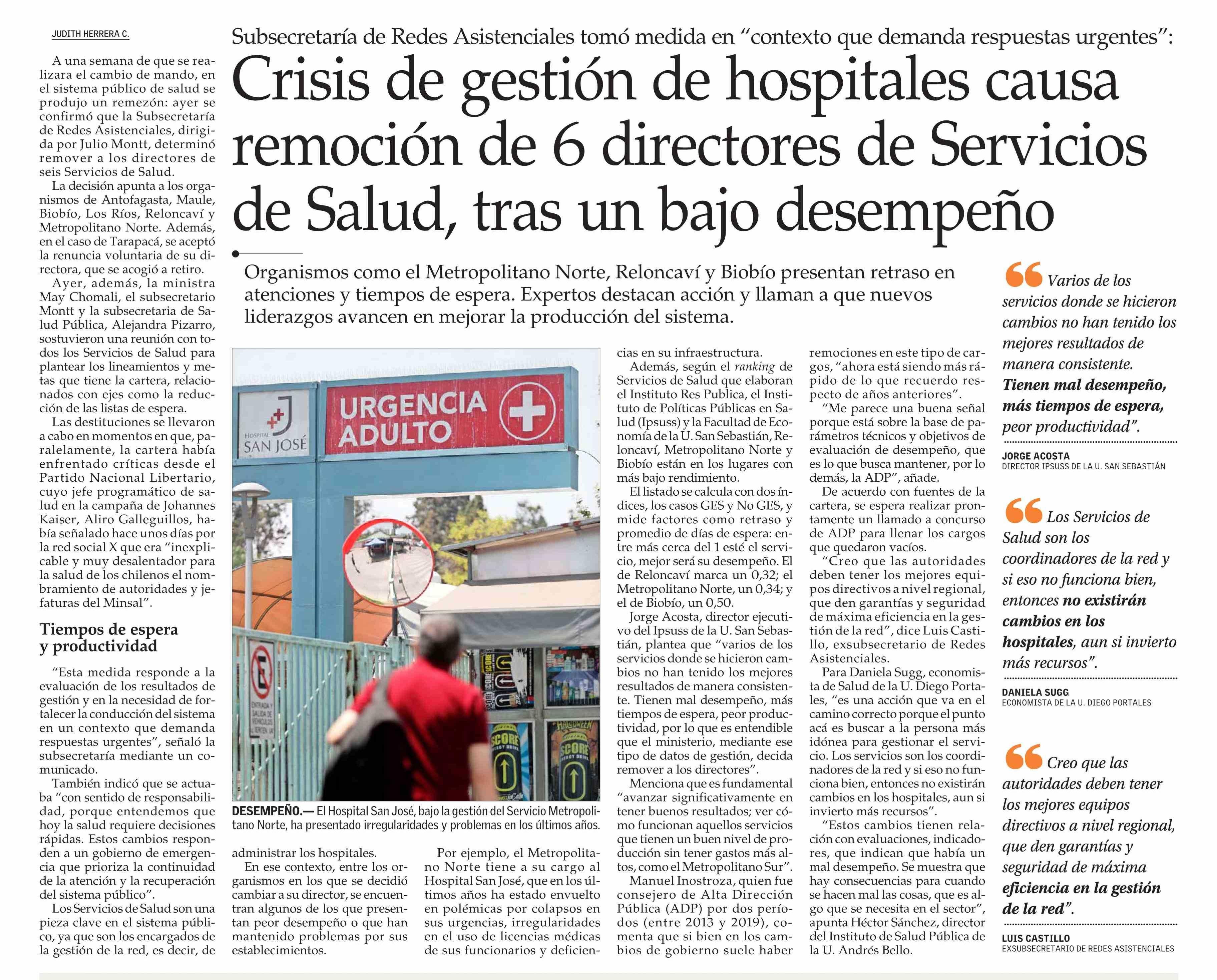 Título: Crisis de gestión de hospitales causa remoción de 6 directores de Servicios de Salud, tras un bajo desempeño