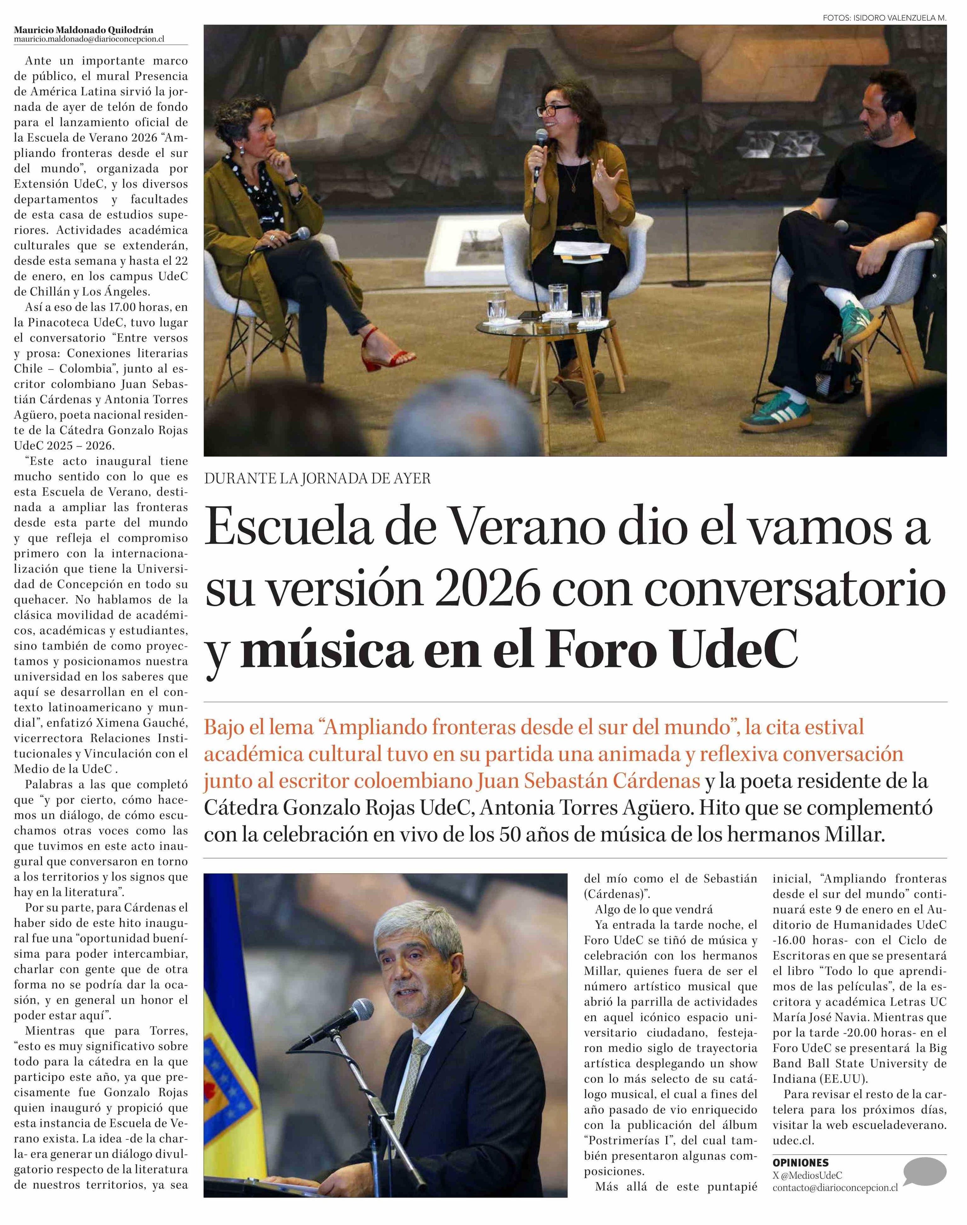 Título: Escuela de Verano dio el vamos a su versión 2026 con conversatorio y música en el Foro UdeC