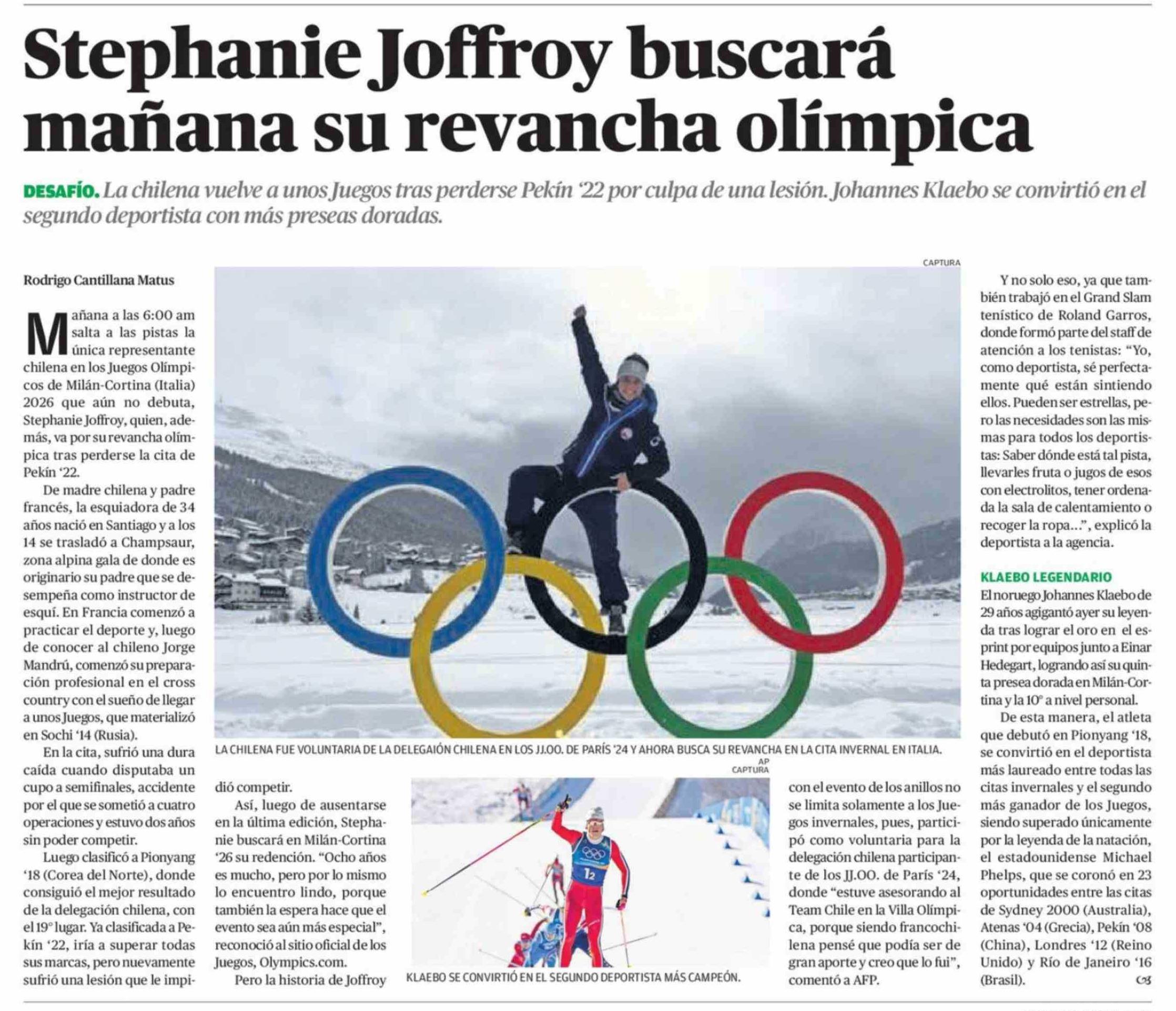 Stephanie Joffroy buscará mañana su revancha olímpica 19-02-2026 El Diario de Atacama |