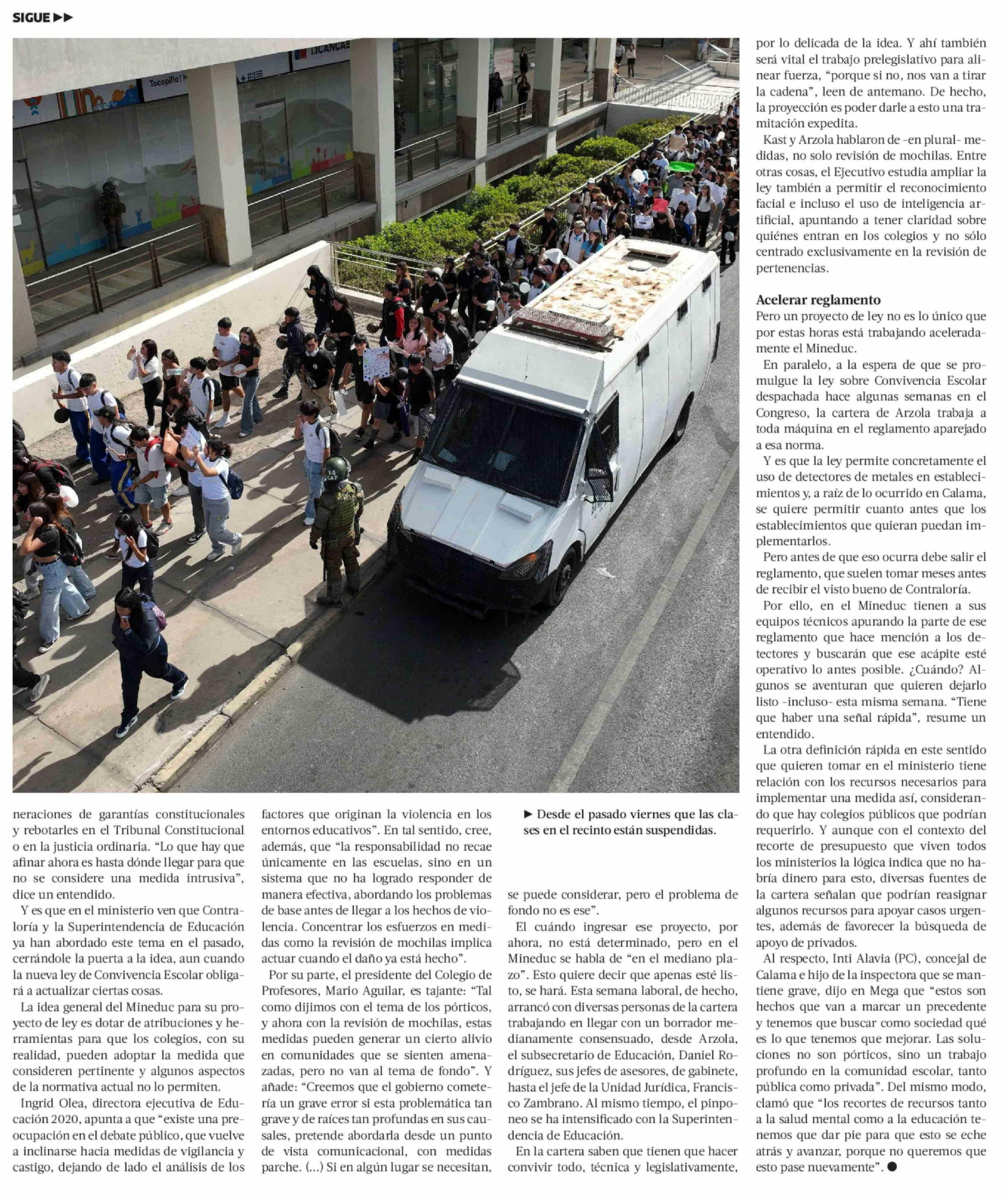 | Título: | Gobierno apura proyecto que permitiría revisión de mochilas y otras medidas de monitoreo en colegios |
