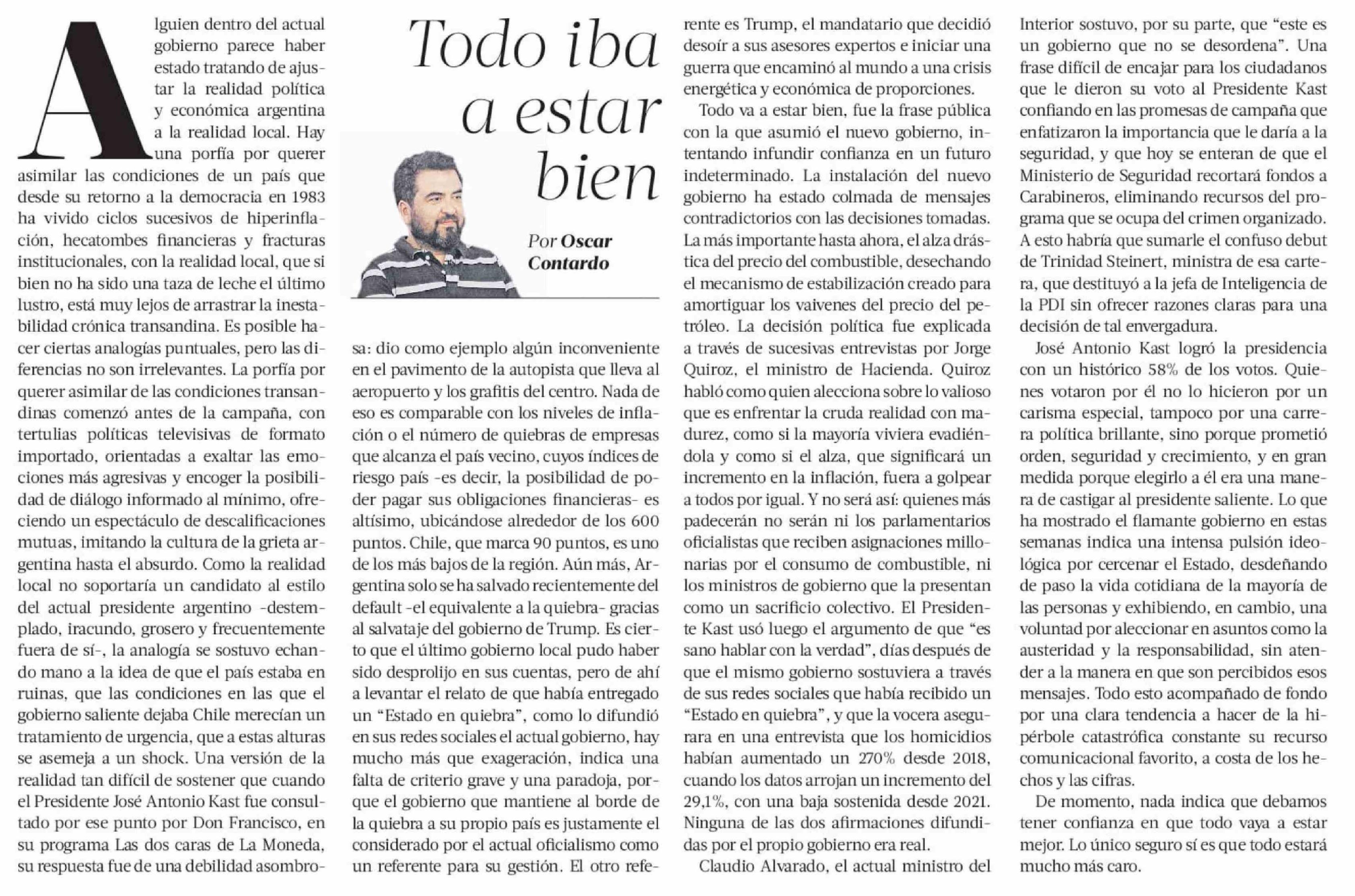 Columnas de Opinión: Todo iba a estar bien 29-03-2026 La Tercera |