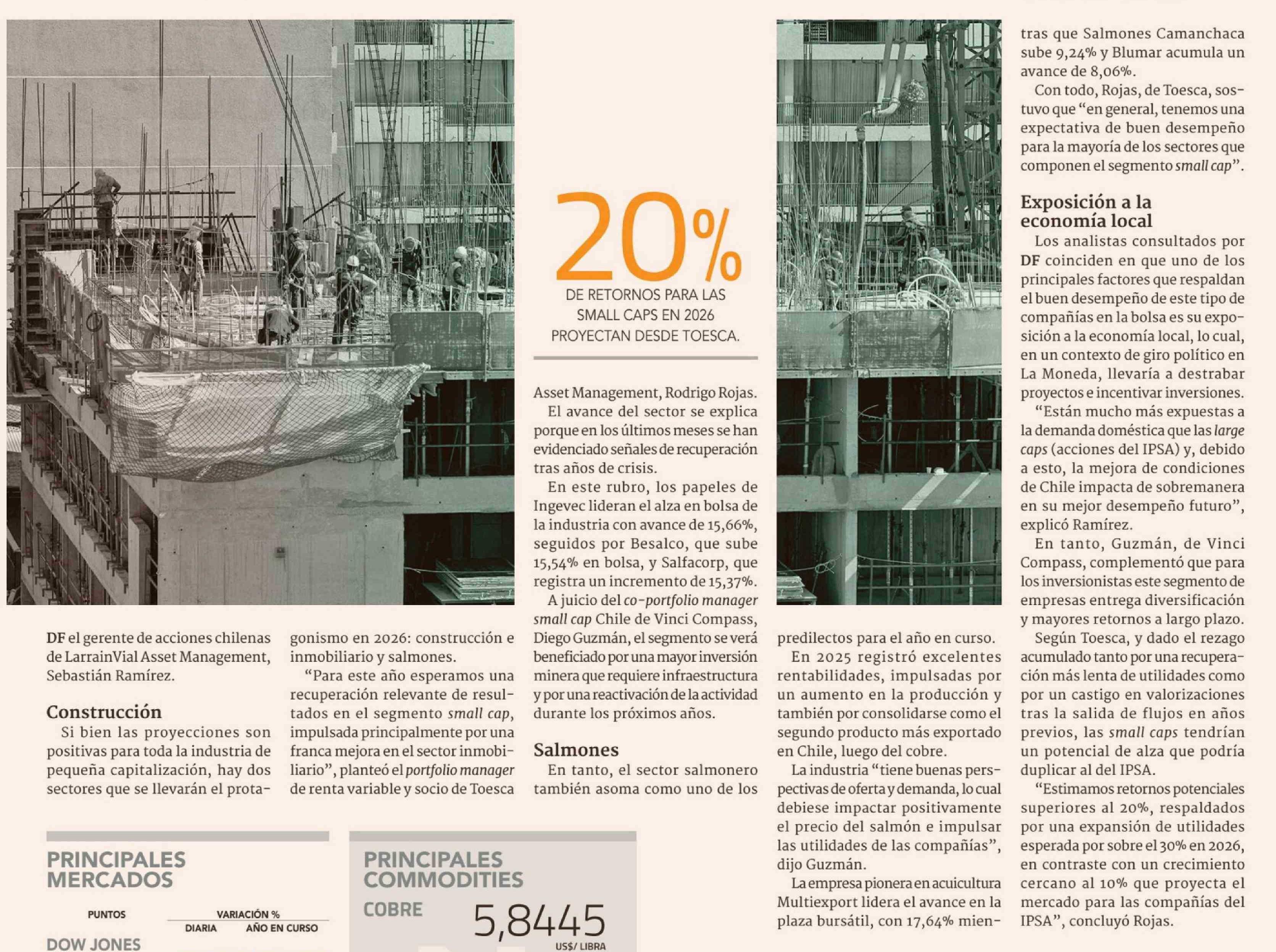 Título: Small caps toman protagonismo en la bolsa, con constructoras y salmoneras liderando el segmento