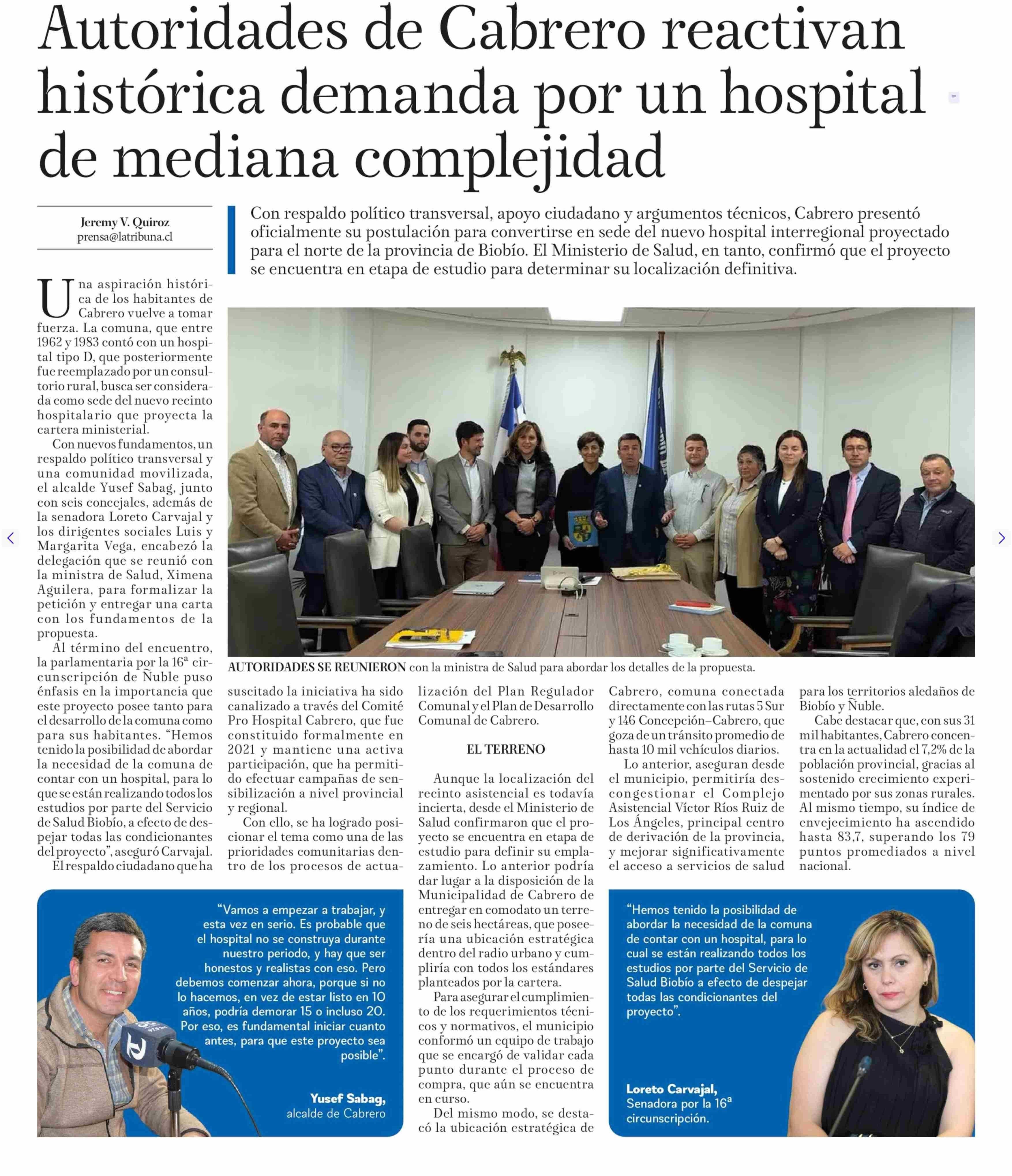 Autoridades de Cabrero reactivan histórica demanda por un hospital de mediana complejidad 05-05-2025 La Tribuna |