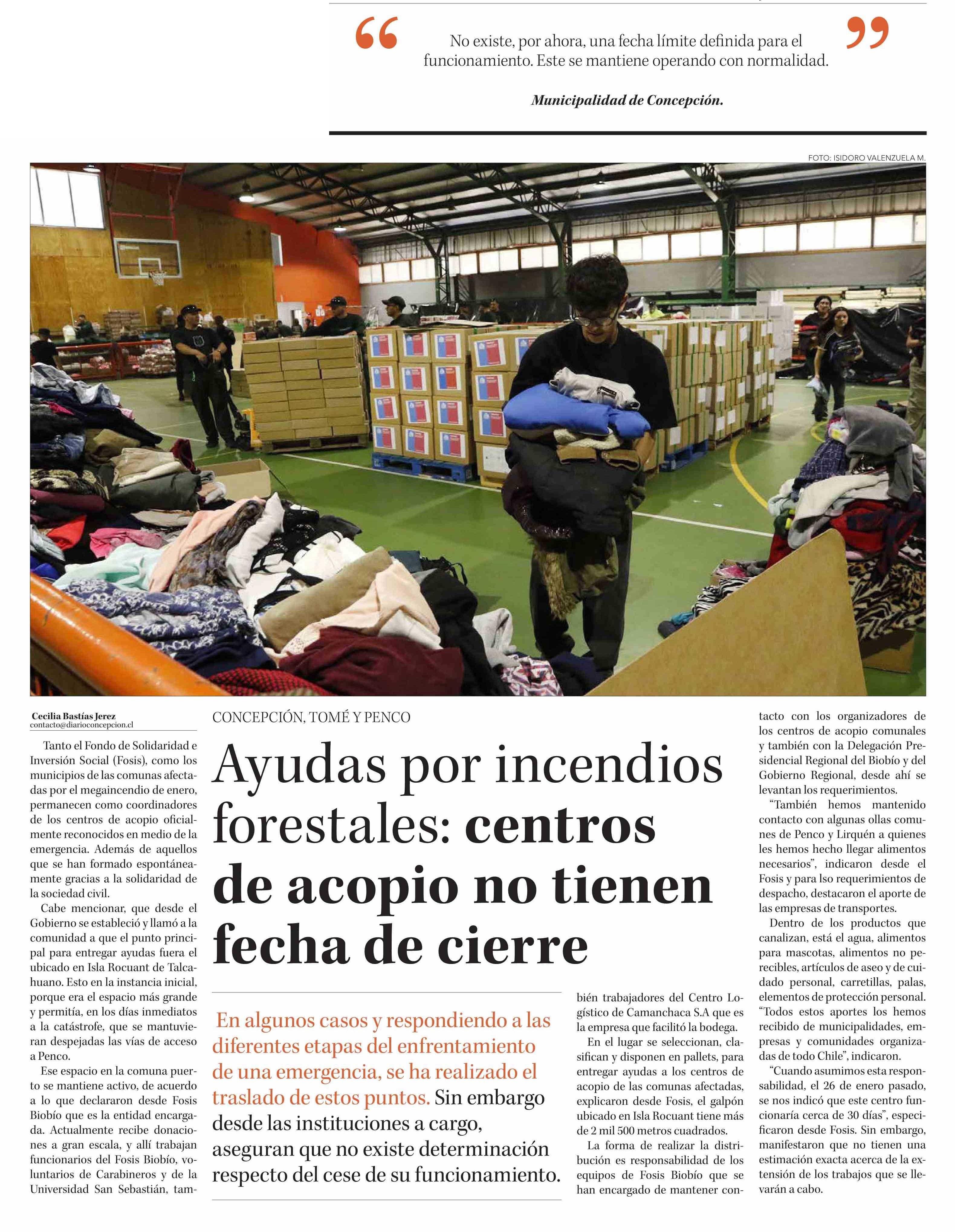 Ayudas por incendios forestales: centros de acopio no tienen fecha de cierre 06-02-2026 Diario Concepción |