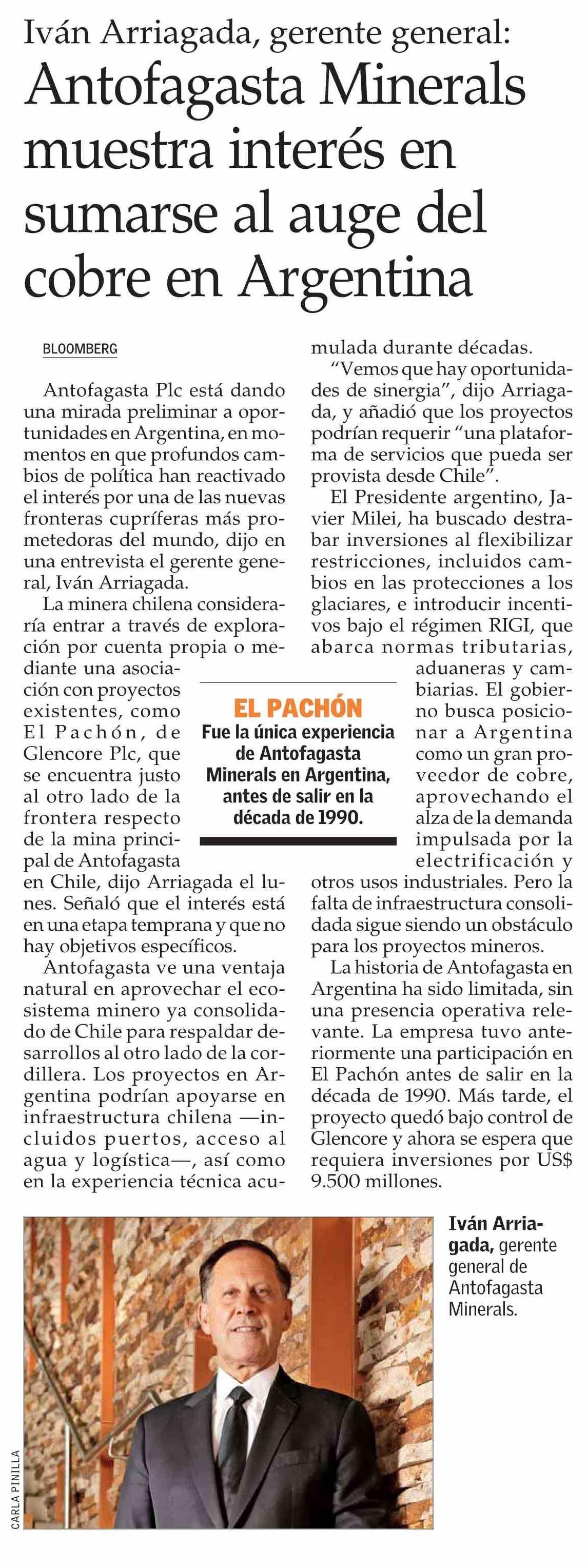 Título: Antofagasta Minerals muestra interés en sumarse al auge del cobre en Argentina