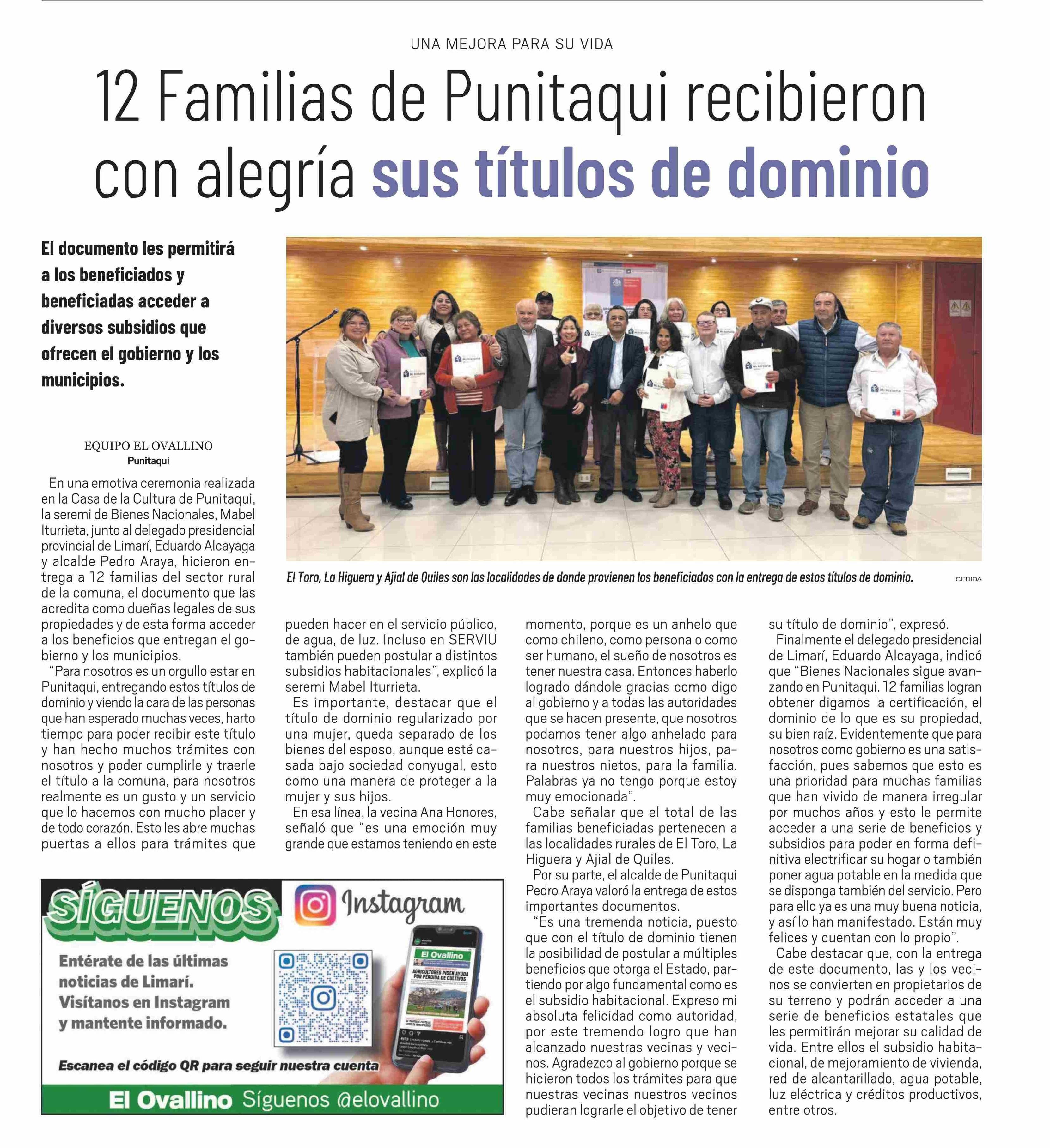12 Familias de Punitaqui recibieron con alegría sus títulos de dominio 06-06-2025 El Ovallino |