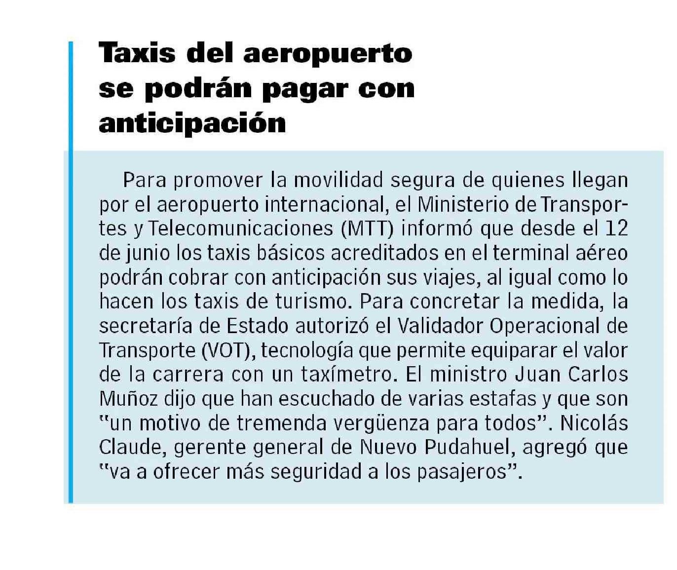 Taxis del aeropuerto se podrán pagar con anticipación 30-05-2025 Las Últimas Noticias |