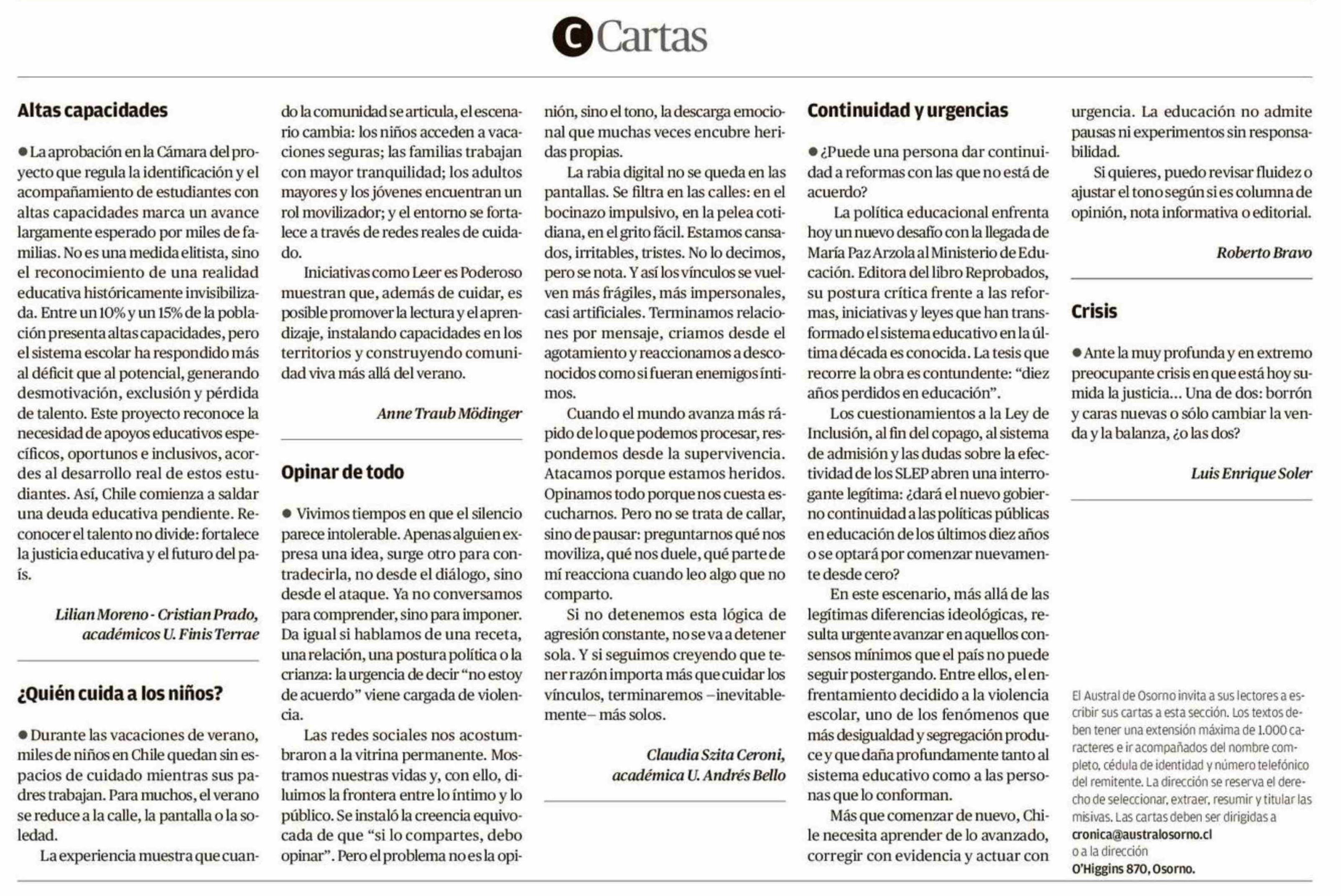 | Título: | · Durante las vacaciones de verano, miles de niños en Chile quedan sin espacios de cuidado mientras sus padres trabajan. Para muchos, el verano se reduce a la calle, la pantalla o la soledad. |