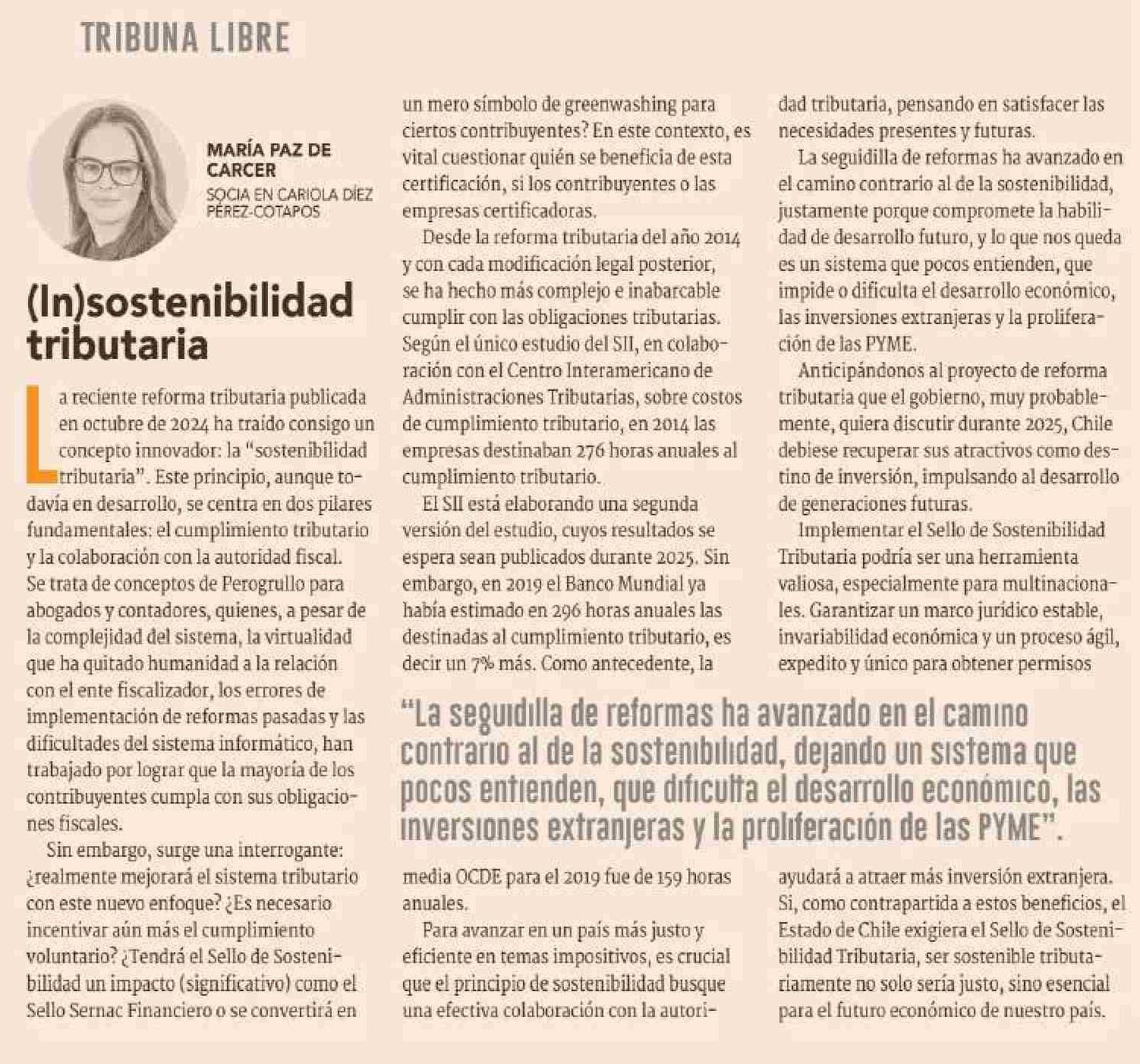 (In)sostenibilidad tributaria 27-03-2025 Diario Financiero |