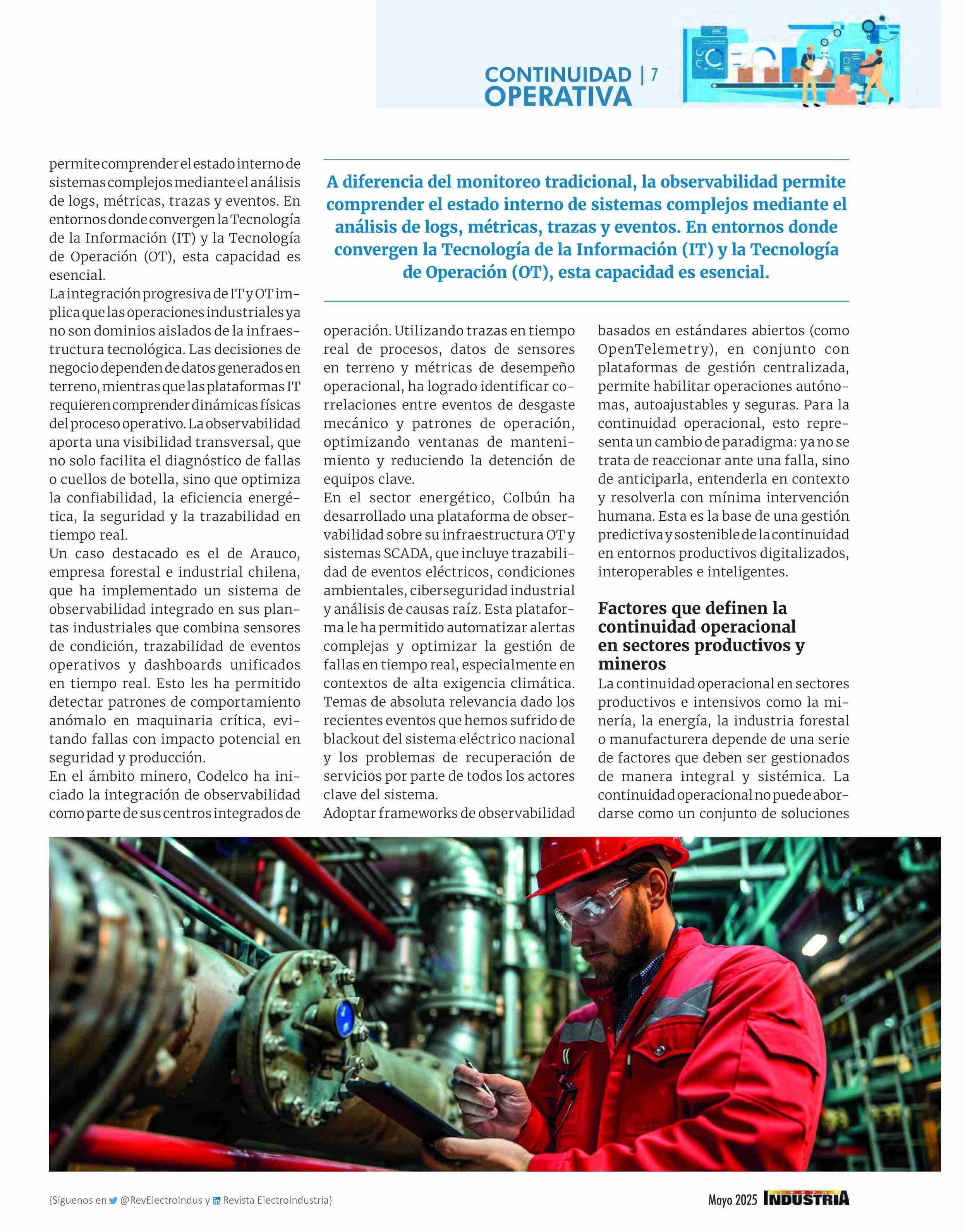 Continuidad operacional: La nueva frontera estratégica de las industrias resilientes 29-05-2025 Revista Electro Industria |