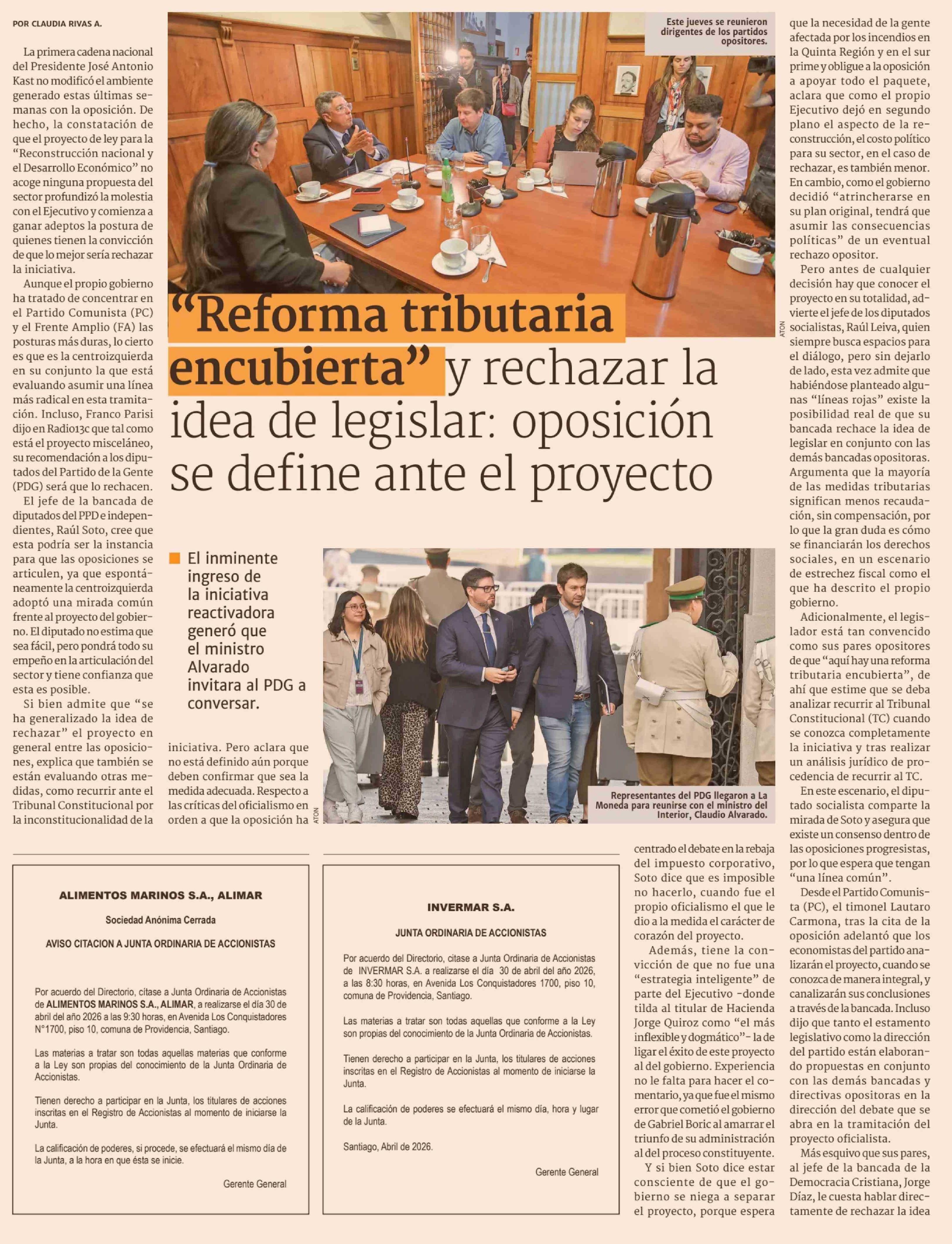 "Reforma tributaria encubierta" y rechazar la idea de legislar: oposición se define ante el proyecto 17-04-2026 Diario Financiero |