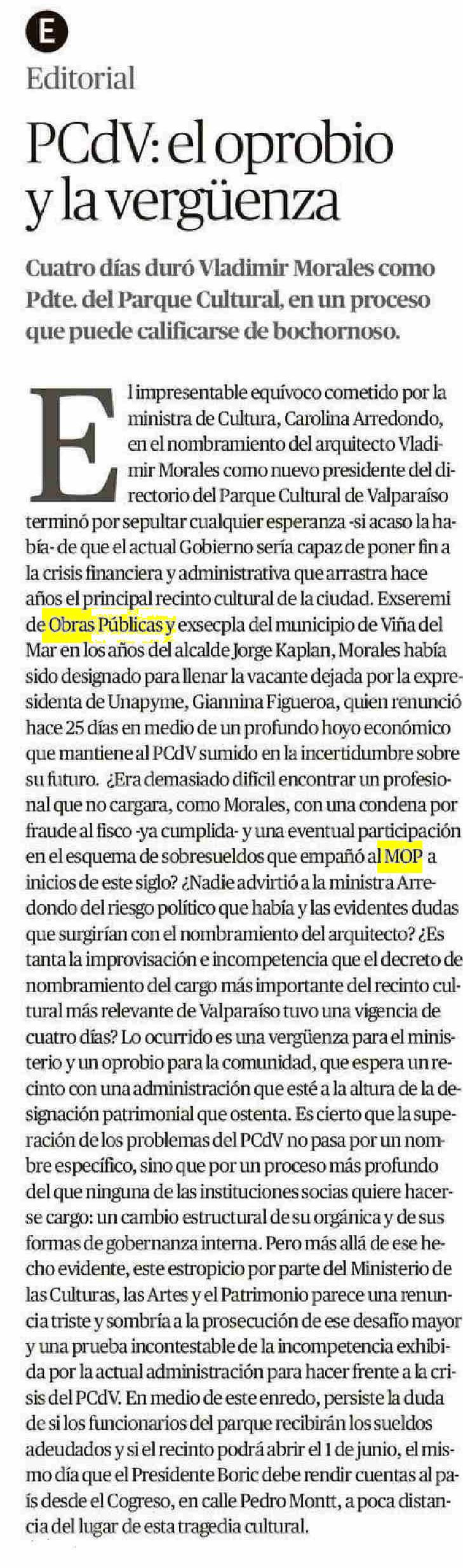 PCdV: el oprobio y la vergüenza 31-05-2025 El Mercurio de Valparaíso |