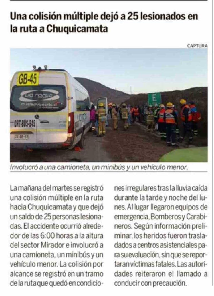 Título: Una colisión múltiple dejó a 25 lesionados en la ruta a Chuquicamata