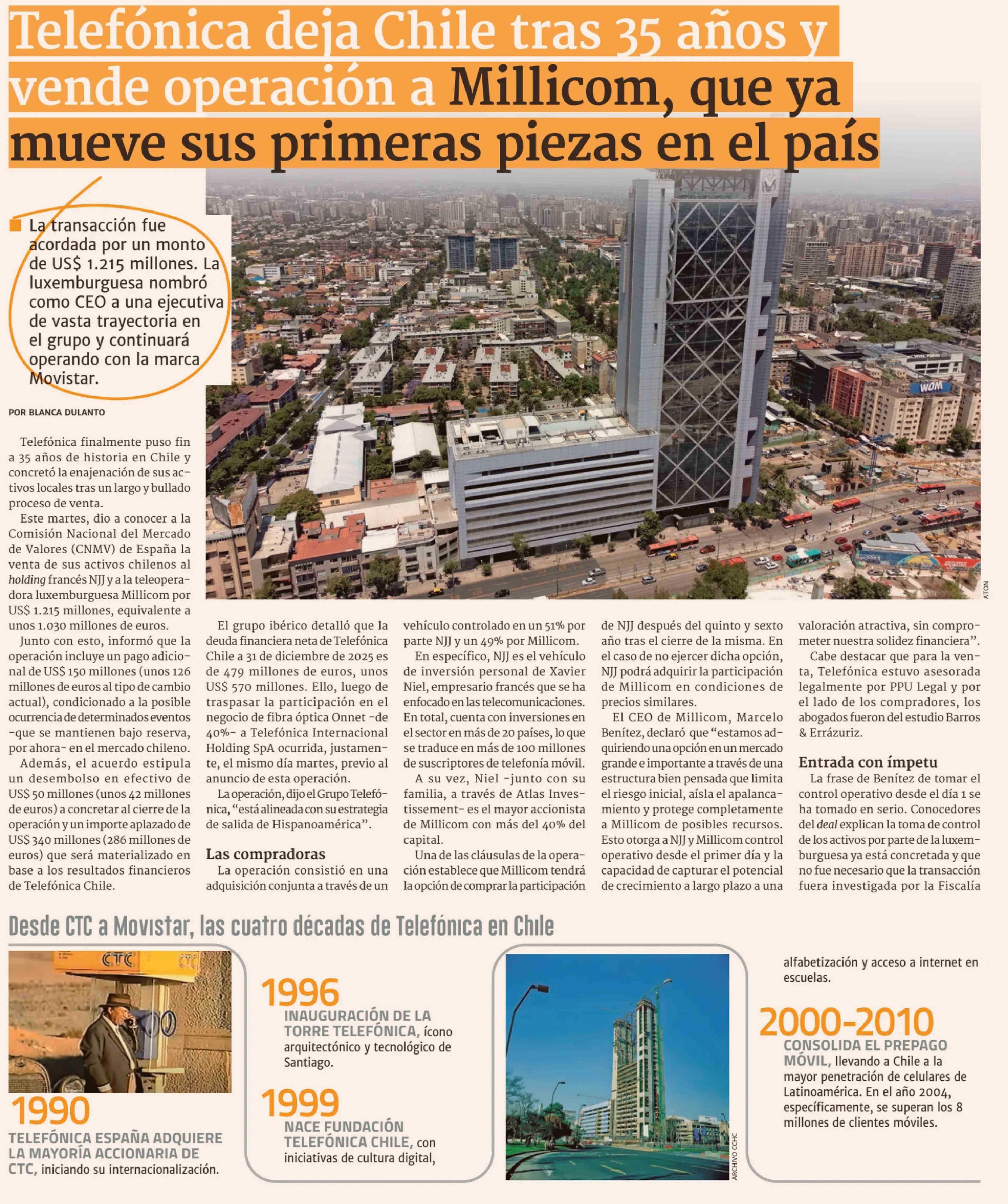 Título: Telefónica deja Chile tras 35 años y vende operación a Millicom, que ya mueve sus primeras piezas en el país
