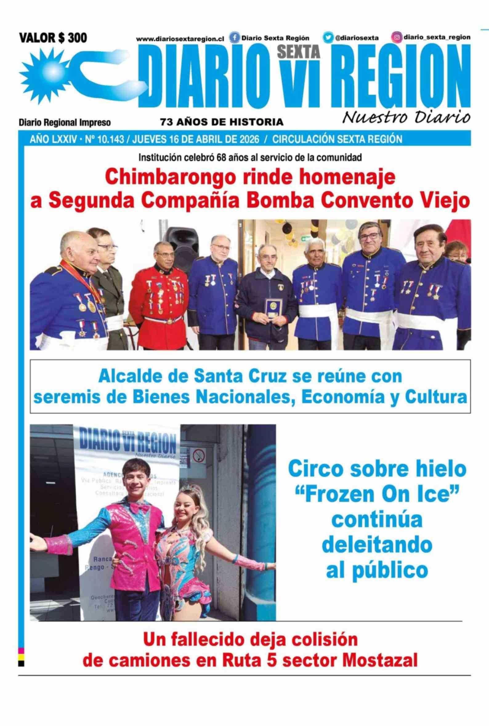 | Fecha: | 16-04-2026 | Sector: | Portada | Región: | Región del Libertador General Bernardo O'Higgins |