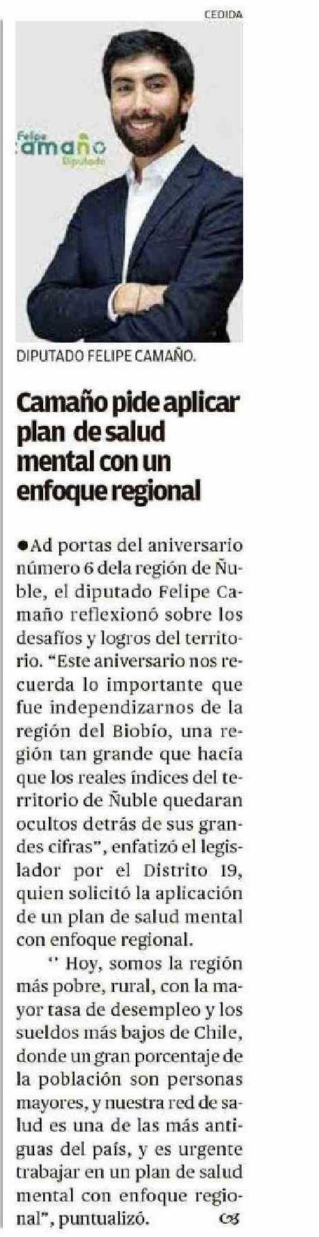 Camaño pide aplicar plan de salud mental con un enfoque regional 06-09-2023 Crónica de Chillán |