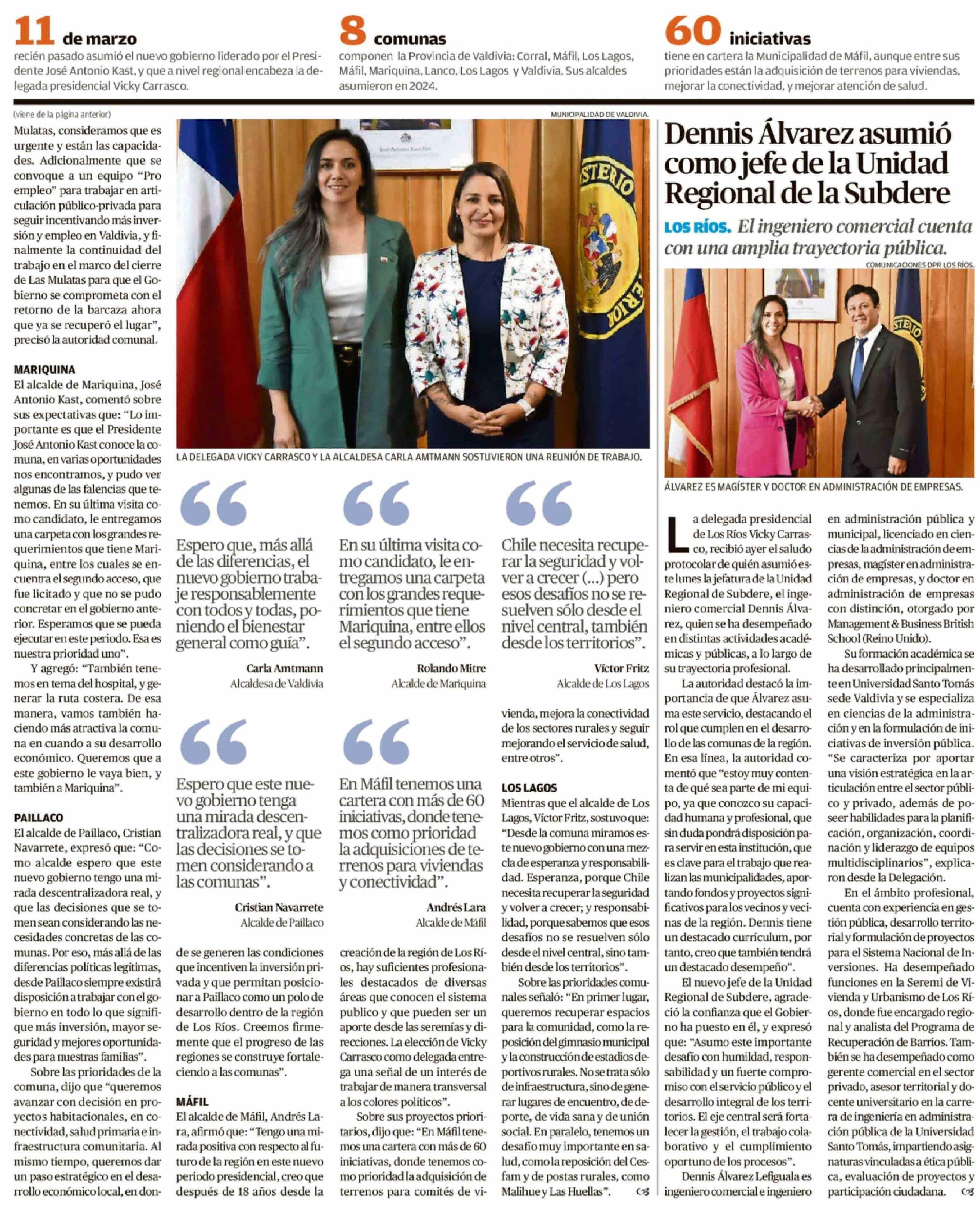 Alcaldes exponen sus expectativas y prioridades ante nuevo gobierno 18-03-2026 Diario Austral Región de Los Ríos |