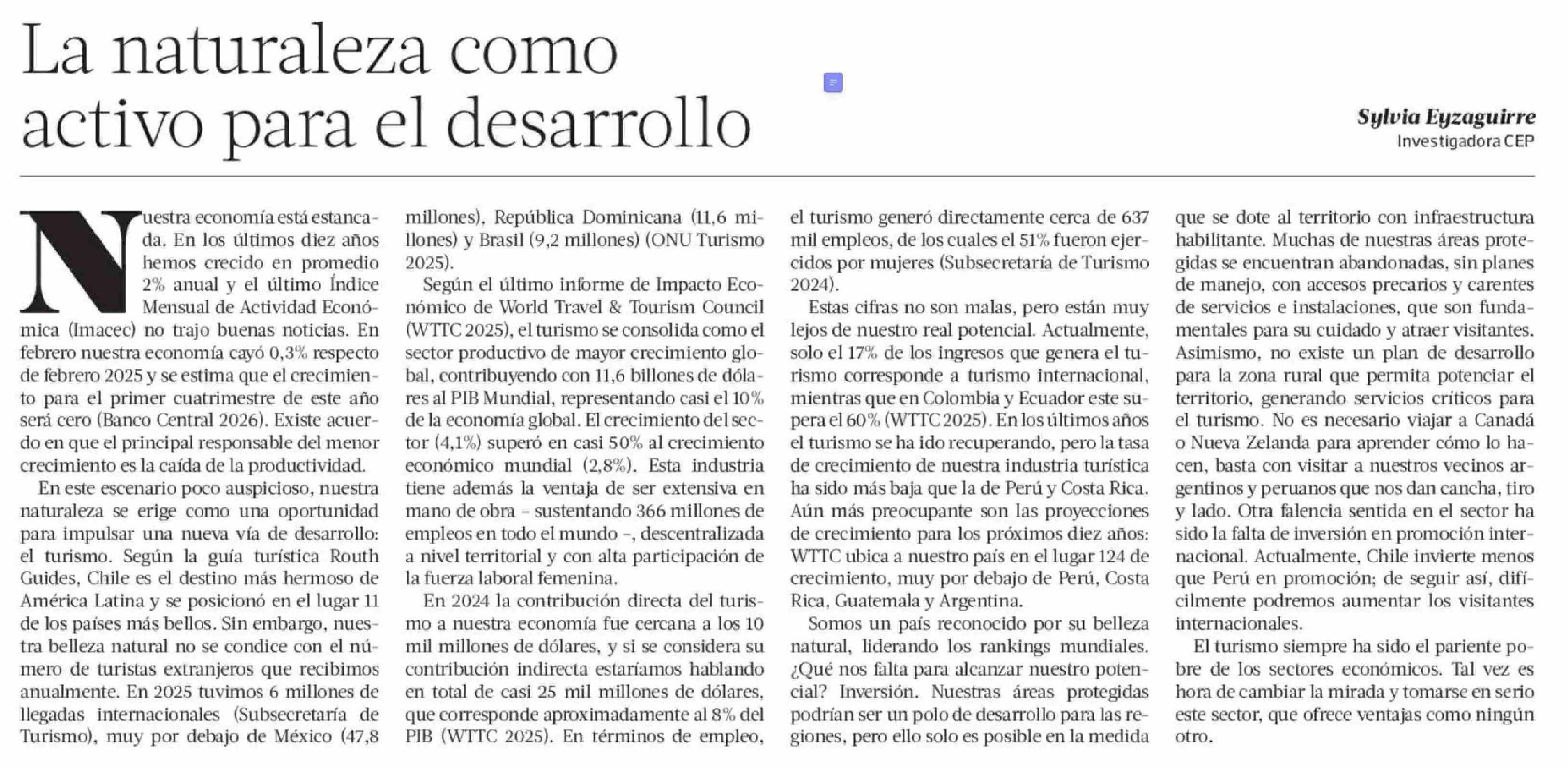 Título: Columnas de Opinión: La naturaleza como activo para el desarrollo