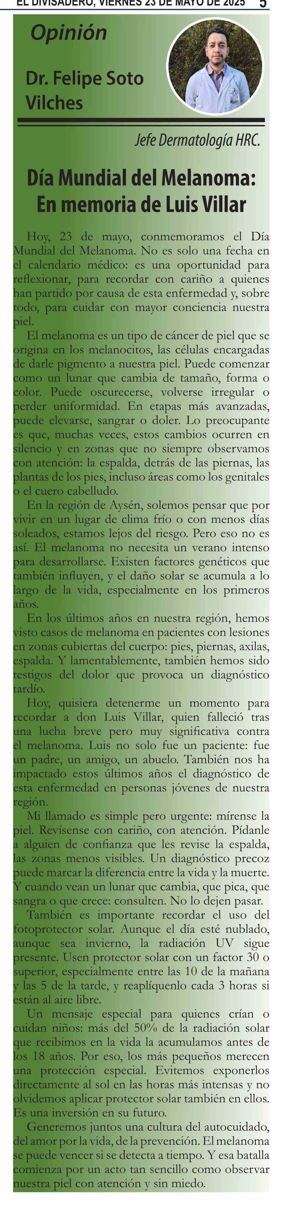 Título: Columnas de Opinión: Día Mundial del Melanoma: En memoria de Luis Villar