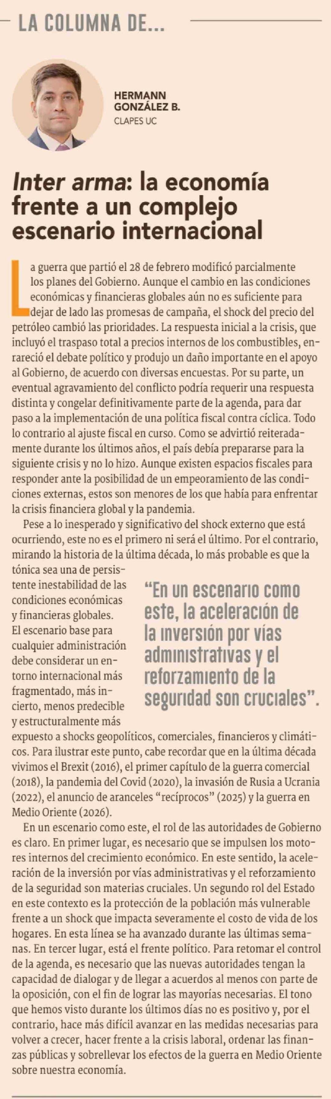 Título: Columnas de Opinión: Inter arma: la economía frente a un complejo escenario internacional